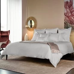 The Acarya Decorative Pillow is a dynamic piece that features lavender florets and buds, hand guided embroidery and hand stitched edging. This cotton linen pillow is perfect for adding color and design to any space. Featuring a distinct balance of bold and bright from old-world traditions and new-world style, John Robshaw displays an updated spin on traditional, handmade textiles with a vibrant mix of sophistication and romantic allure. Dying, printing, and experimenting alongside the artisans to create these unique fabrics, John Robshaw helps preserve traditional block printing, hand-stitching, hand-painting, and hand-quilting textiles in India.