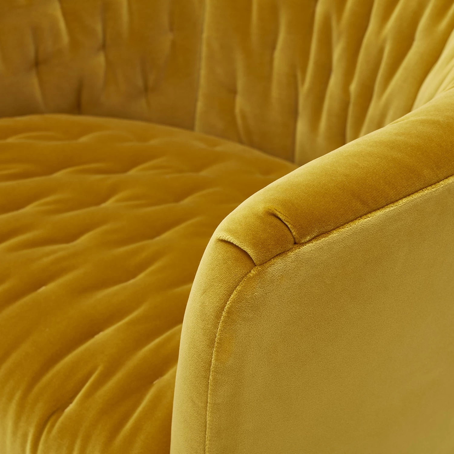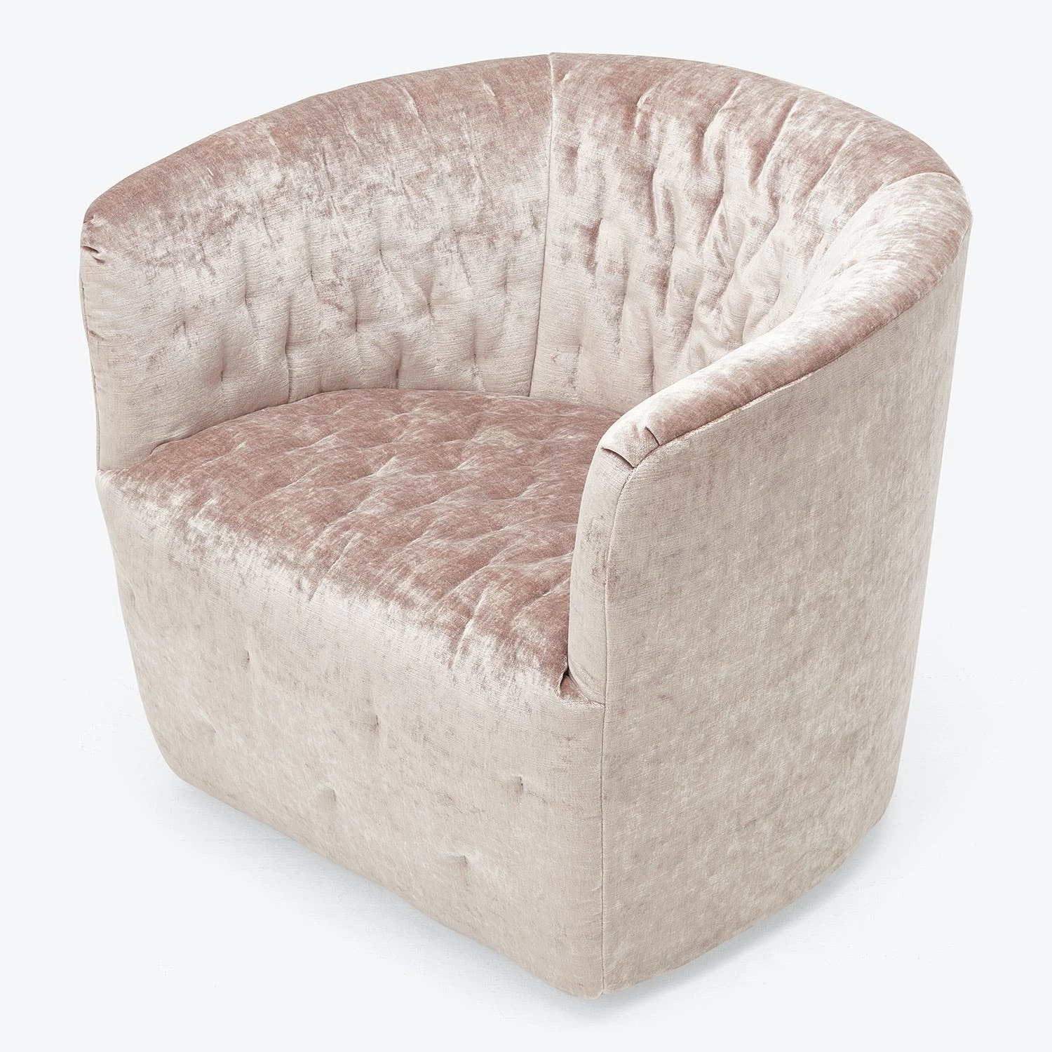 A stunning delight, the Amelia swivel chair conjures up visions of French haute couture. The unique quilted stitching highlights the inner curves and is done completely by hand. Compact yet distinctly impactful, the Amelia chair adds a playful touch to any space. Complete with a removable slipcover for easy cleaning or changing up your look, this piece makes light work of entertaining and hosting your guests.