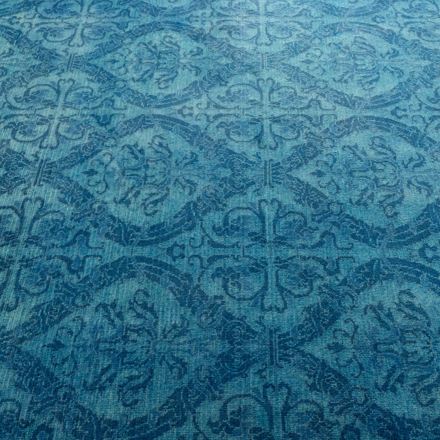 This Blue Overdyed Wool Rug – 5’1″ x 7’6″ epitomizes classic with a twist: a traditional pattern overdyed in a brilliant blue color. This hand-knotted rug is washed in a 100% natural botanical dye that reveals hidden nuances in the unique designs. This one-of-a-kind overdyed rug transcends trends, and its sturdy construction ensures that it’ll withstand years of heavy traffic. Finished with a traditional fringe.