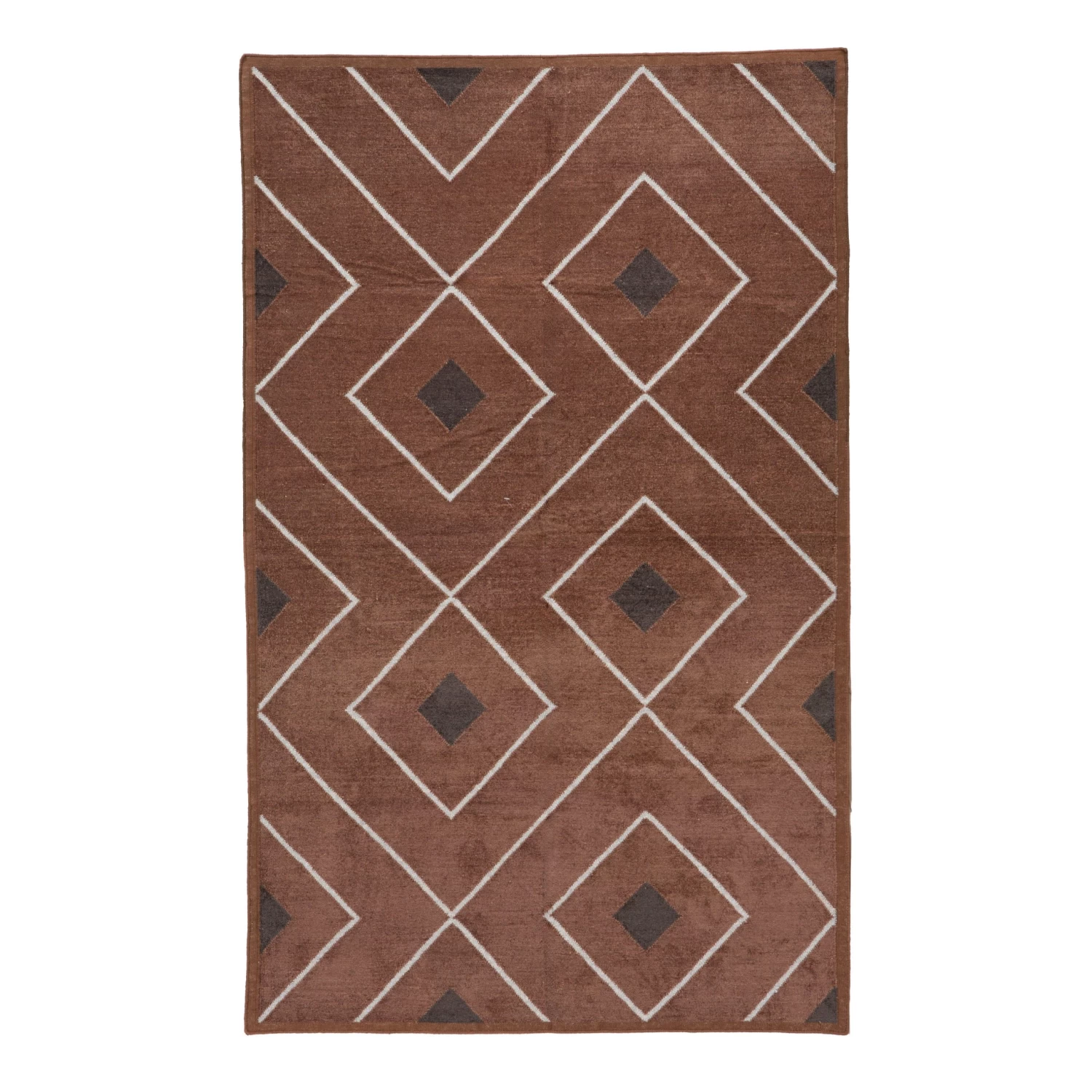 Elevate your modern home with this Ambar Geometric Chenille Rug – 3’6″ x 5’6″. Featuring a geometric diamond design in brown, black, and white, this hand-woven rug adds a stylish touch to your bedroom, living room, or entryway. Experience the perfect blend of contemporary aesthetics and cotton comfort with this exquisite piece.