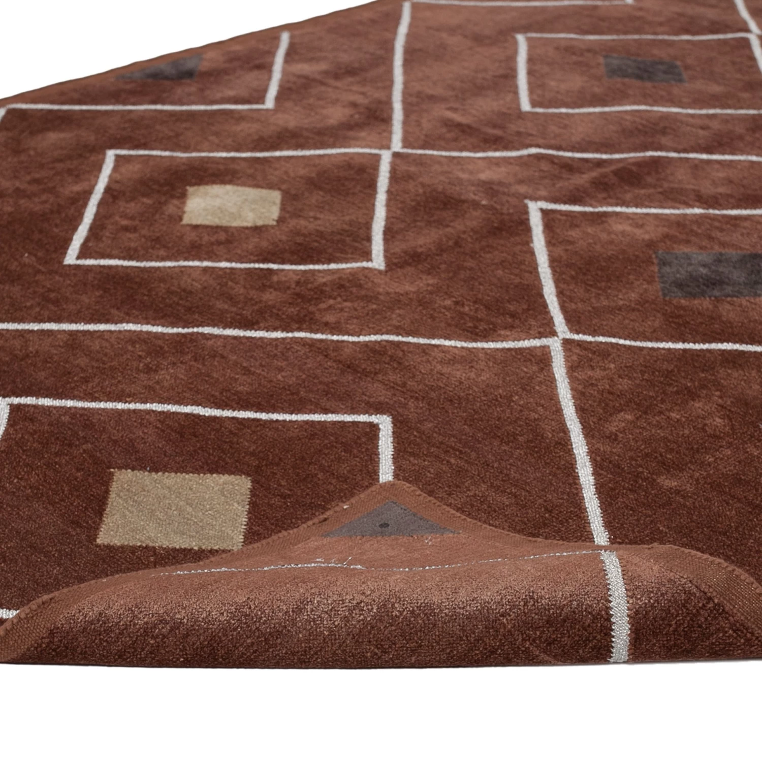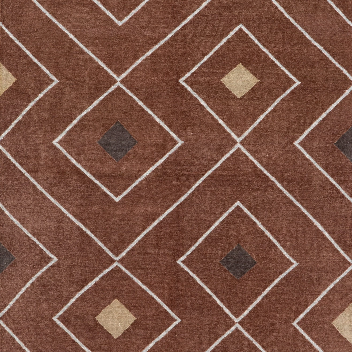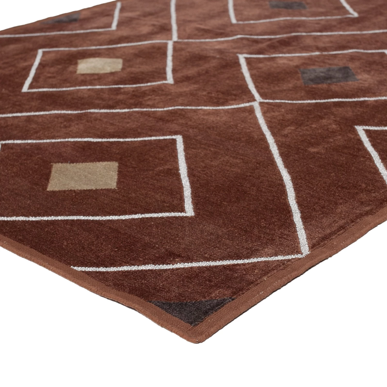 Elevate your modern home with this Iniya Geometric Chenille Rug – 3’6″ x 5’6″. Featuring a geometric diamond design in brown, white, and beige, this hand-woven rug adds a stylish touch to your bedroom, living room, or entryway. Experience the perfect blend of contemporary aesthetics and cotton comfort with this exquisite piece.