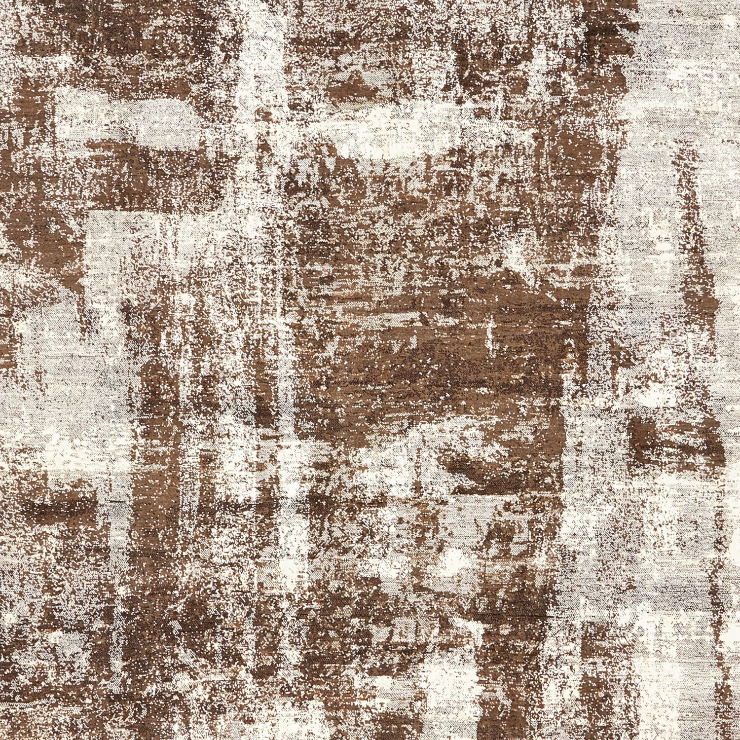 Inky silhouettes in espresso, taupe, and ivory interlock across the ground of this Lumina rug. Handwoven by artisans in Jaipur, India from silk and wool, this one-of-a-kind rug captures a modern fusion of beauty, abstraction and distortion. Streaks of saturated hues commingle with blurs of light, creating painterly compositions evocative of the Abstract Impressionist Movement and artist Mark Rothko.