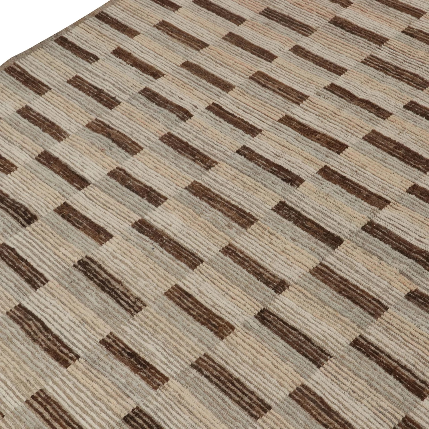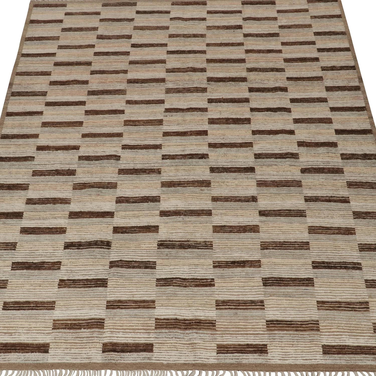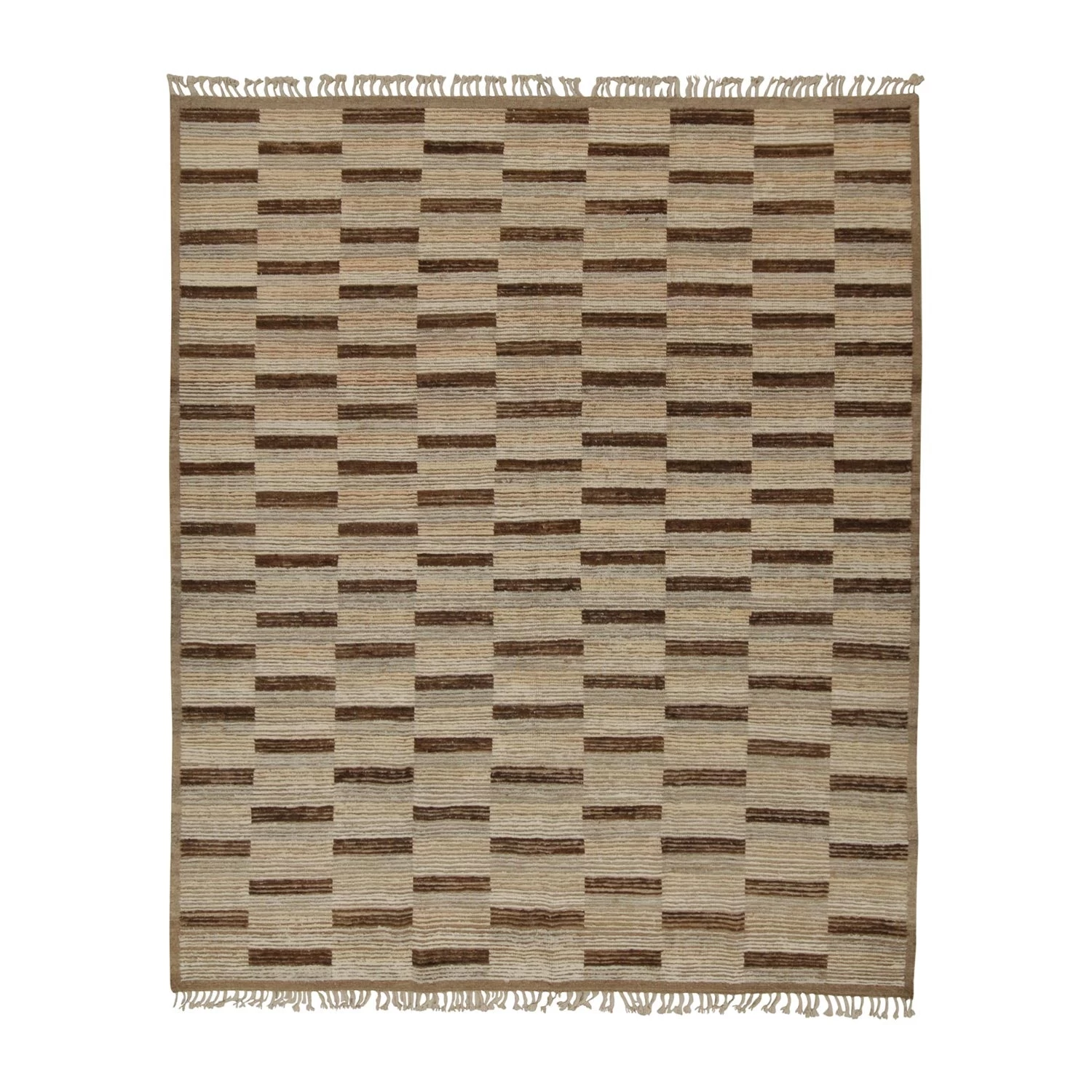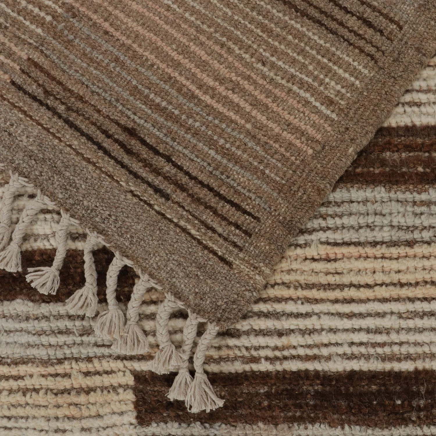 A modern take on traditional Moroccan design, this Brown Moroccan Wool Rug – 8’2″ x 9’9″ is a geometric masterpiece in neutral tones of beige, cream, and brown. In traditional fashion, this area rug is hand-knotted with quality, durable wool with a finishing fringe for an extra touch of texture.