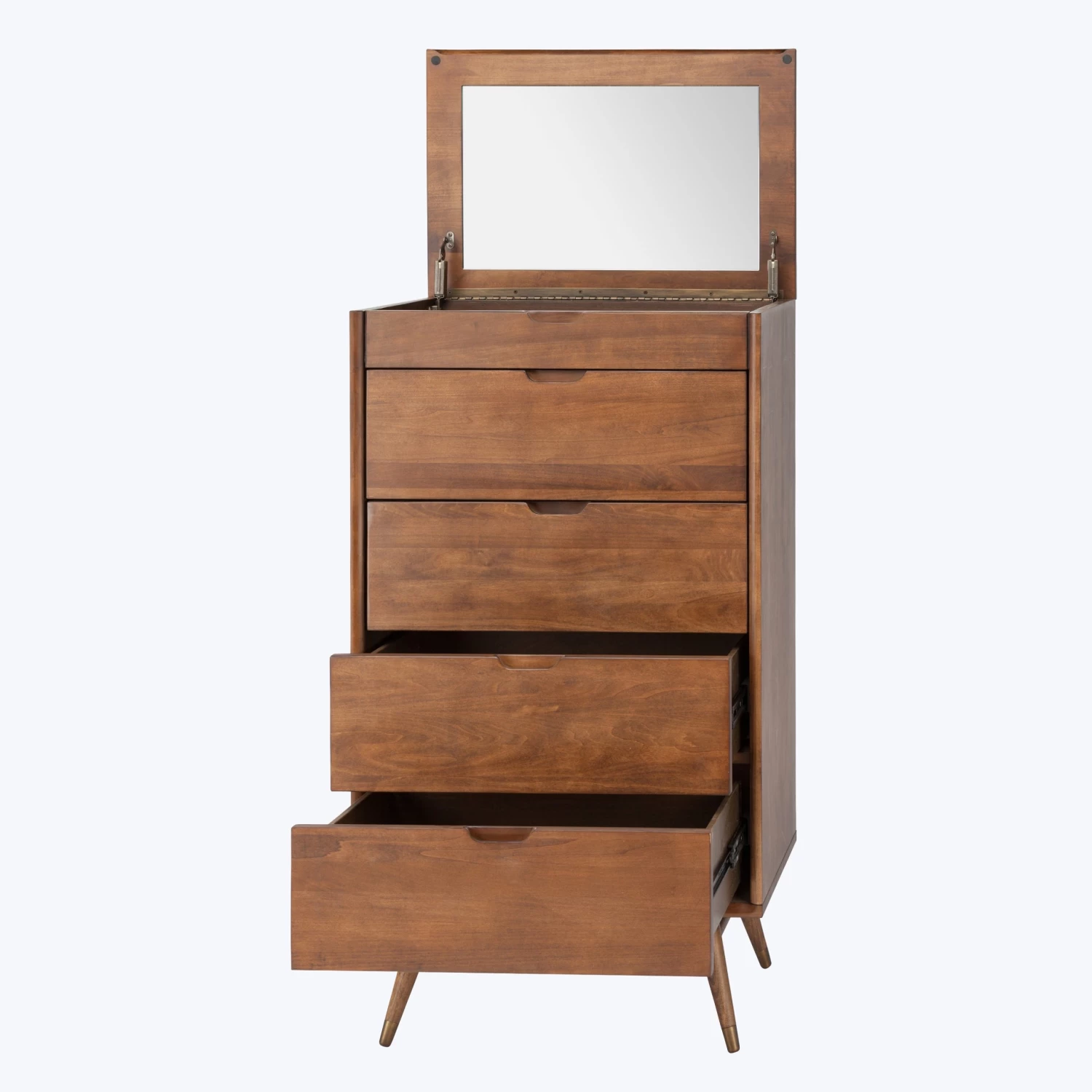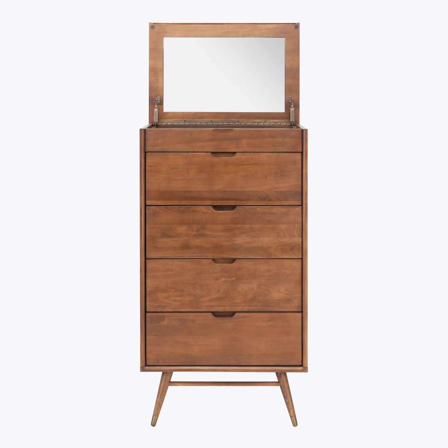 Mid-century style, updated for contemporary living, the Case Dresser features a flip-up vanity mirror, generous storage with soft-close hardware, resting on delicate tapered legs. Perfect for small spaces, the Case has a rounded, streamline look personifies refined, modern elegance.