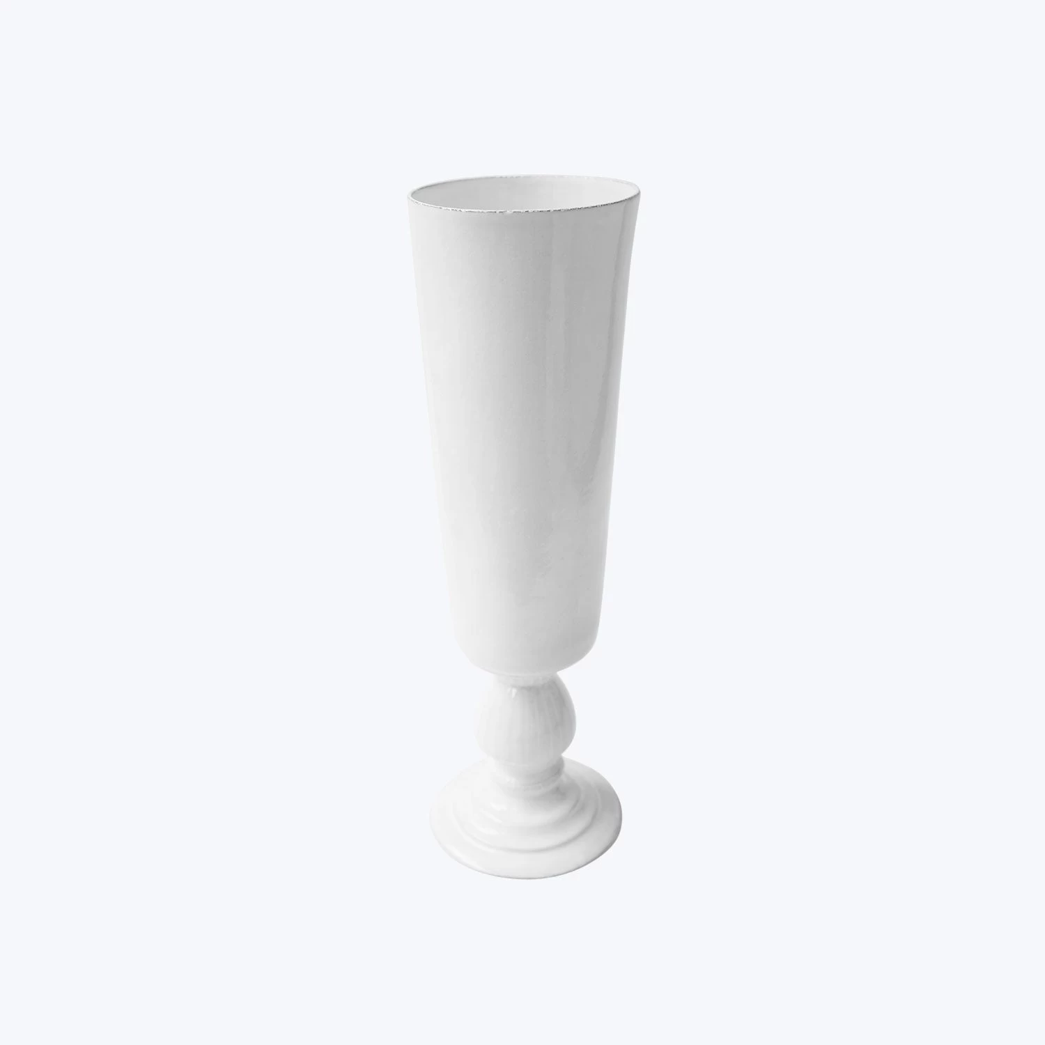 The Casper high vase from Parisian-based ceramic studio Astier de Villatte puts forth striking shapes and hand-sculpted natural textures, emulating the elegance of simplicity in French 18th-century style ceramics. Handmade on the Rue St. Honore in Paris, these ceramics are crafted in a traditional pottery style passed down from generation to generation Ñ putting forth one-of-a-kind objects both romantically bohemian and practical in their everyday use. Hand molded from black terracotta, each piece from Astier de Villatte is finished in a milky-white glaze that highlights the unique character of the clay, celebrating its imperfections and ensuring that no two pieces are exactly alike.