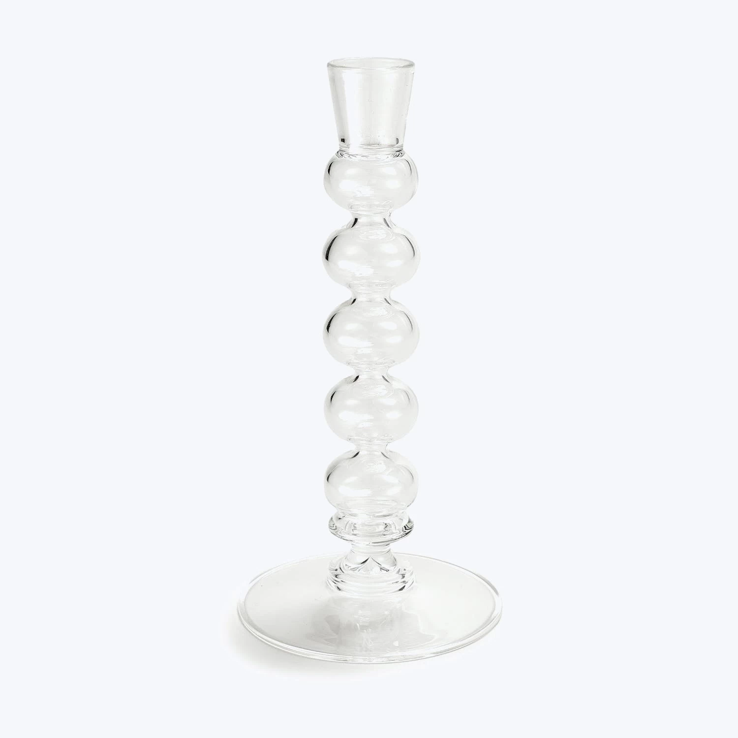 The Clarabelle candlestick reflects illuminations through a series of light-as-air glass shapes. Made on the Rue St. Honorลฝ in Paris, these impossibly thin glass pieces are entirely handcrafted in an antique Bastille workshop, historically home to Napoleon Bonaparte’s own silversmith. Hand-blown into airy silhouettes, these delicate pieces add a touch of Parisian poetry to the well-appointed kitchen.