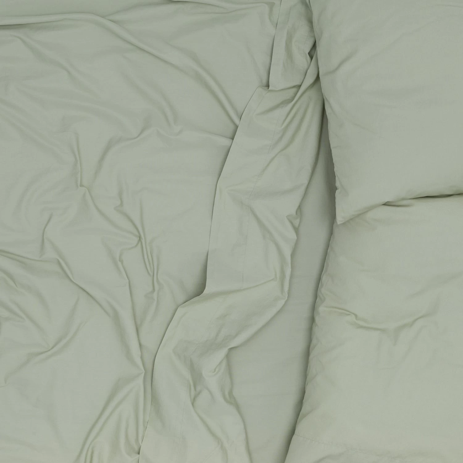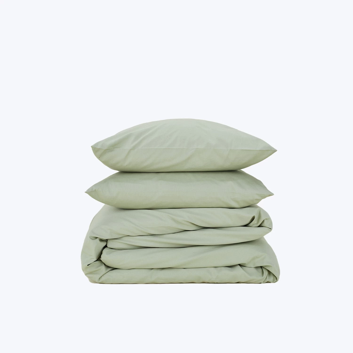 Delightfully silky and crisp, this sage percale duvet cover is crafted from GOTS-certified, long-staple organic cotton. Percale weave enriches the tactile experience with its smooth softness and washes well. Finished with hidden button closures and corner ties, the duvet design ensures that comforters stay in place.