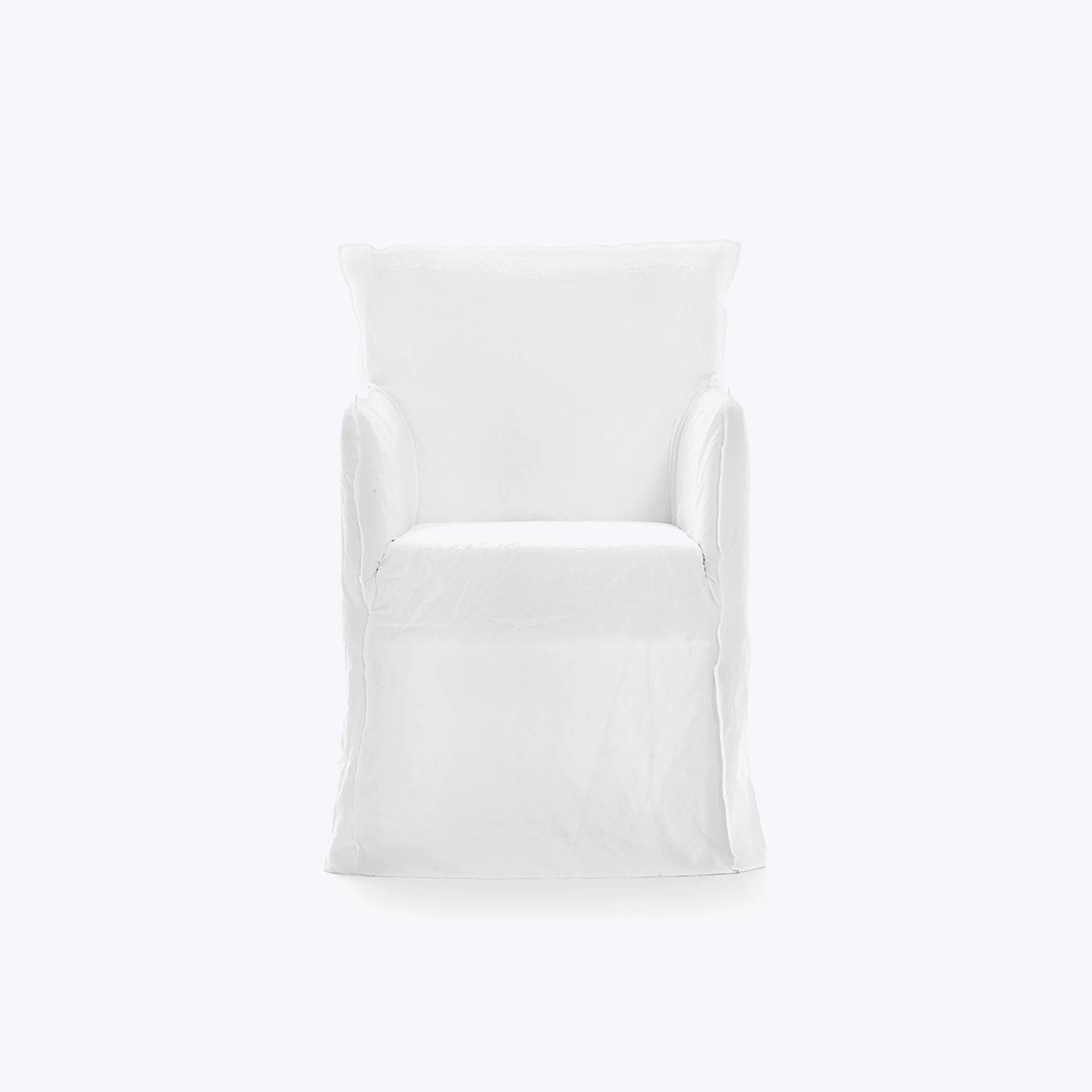 Designed by Italian architect-designer Paola Navone, the Ghost Slipcover Dining Chair with Arms features a clean, defined shape courtesy of its wide, sturdy wooden frame padded with soft foam. Featuring an oversized removable slipcover, this cotton and linen dining chair is underlined by visible stitching allowing it to be taken on and off quickly and easily. The Ghost Furniture Collection combines comfort and versatility to find the perfect balance between simple and sophisticated for your contemporary home.