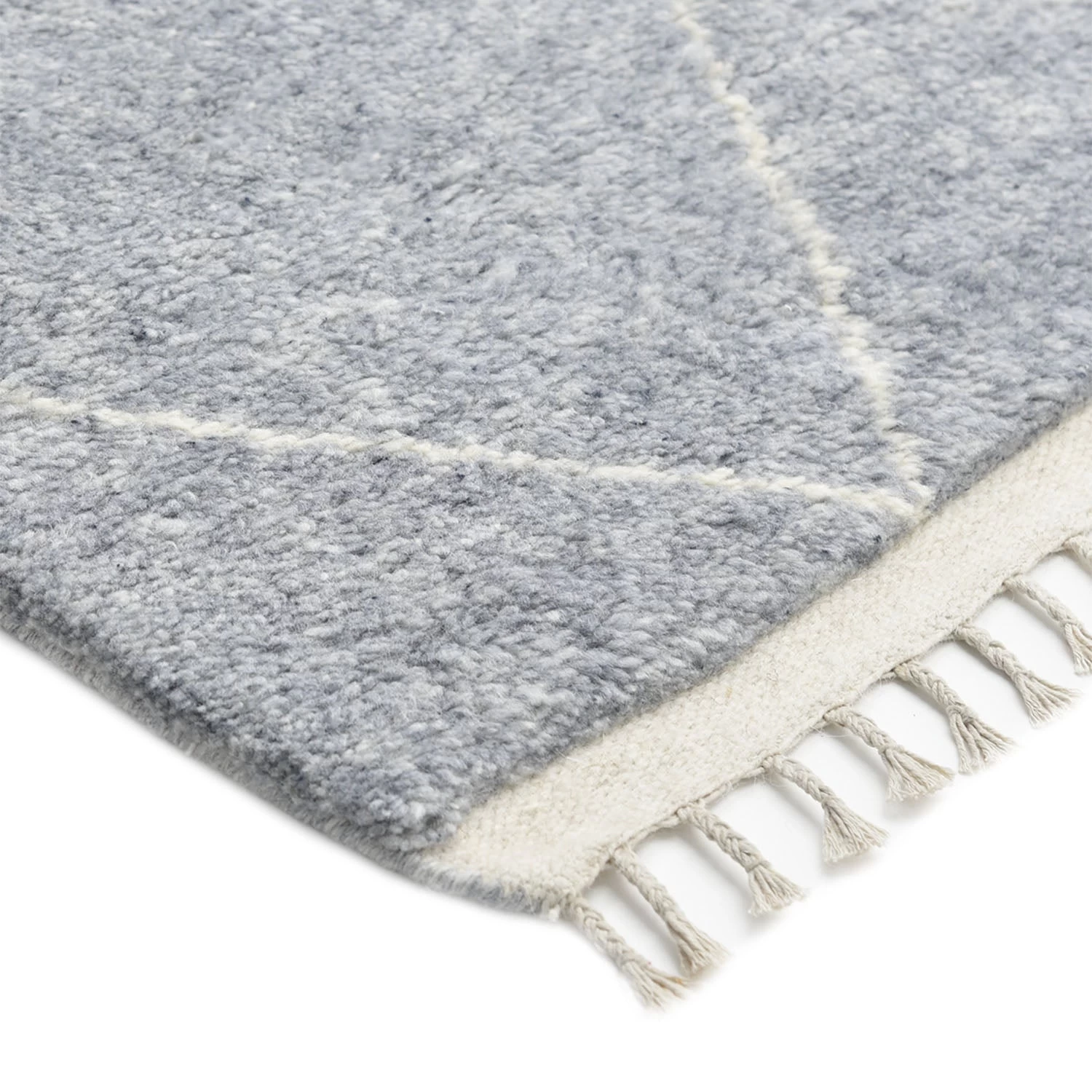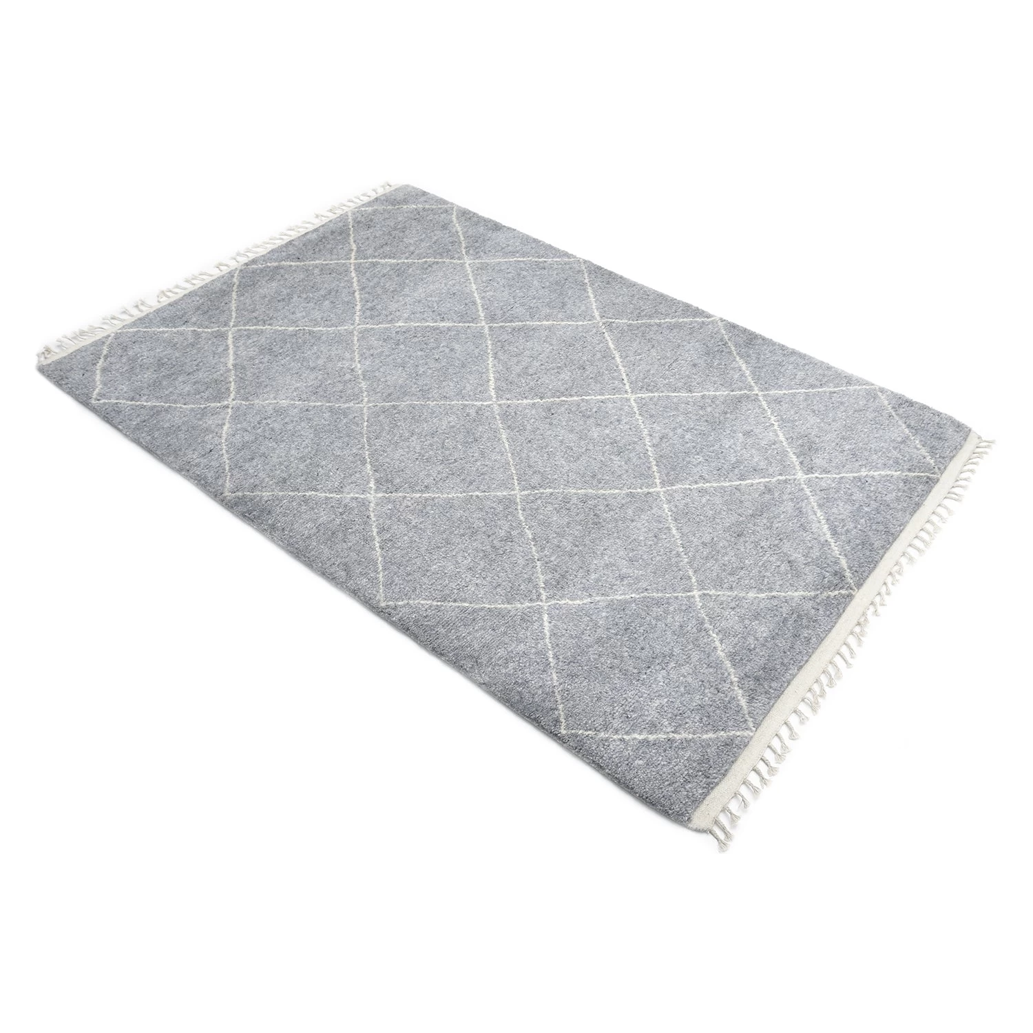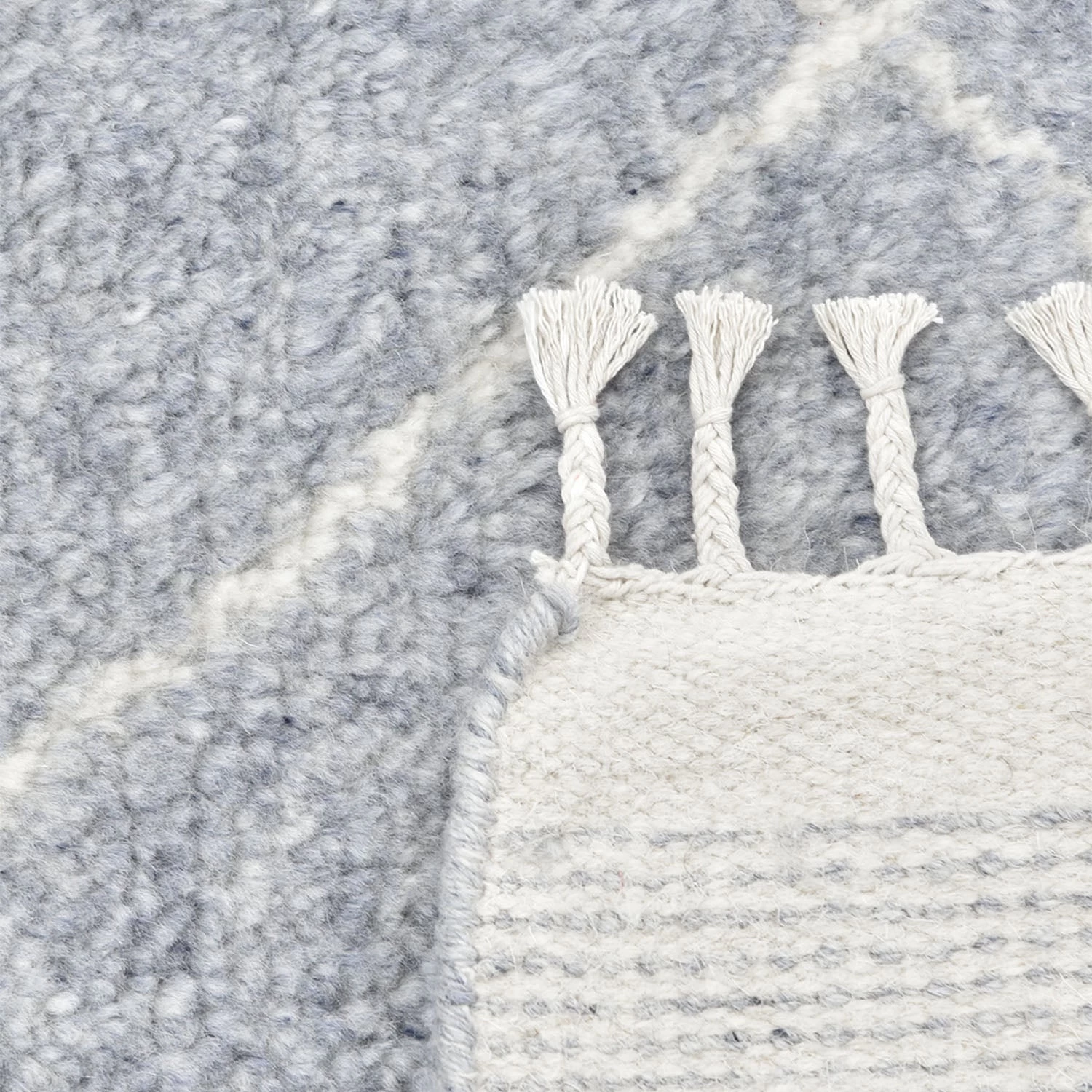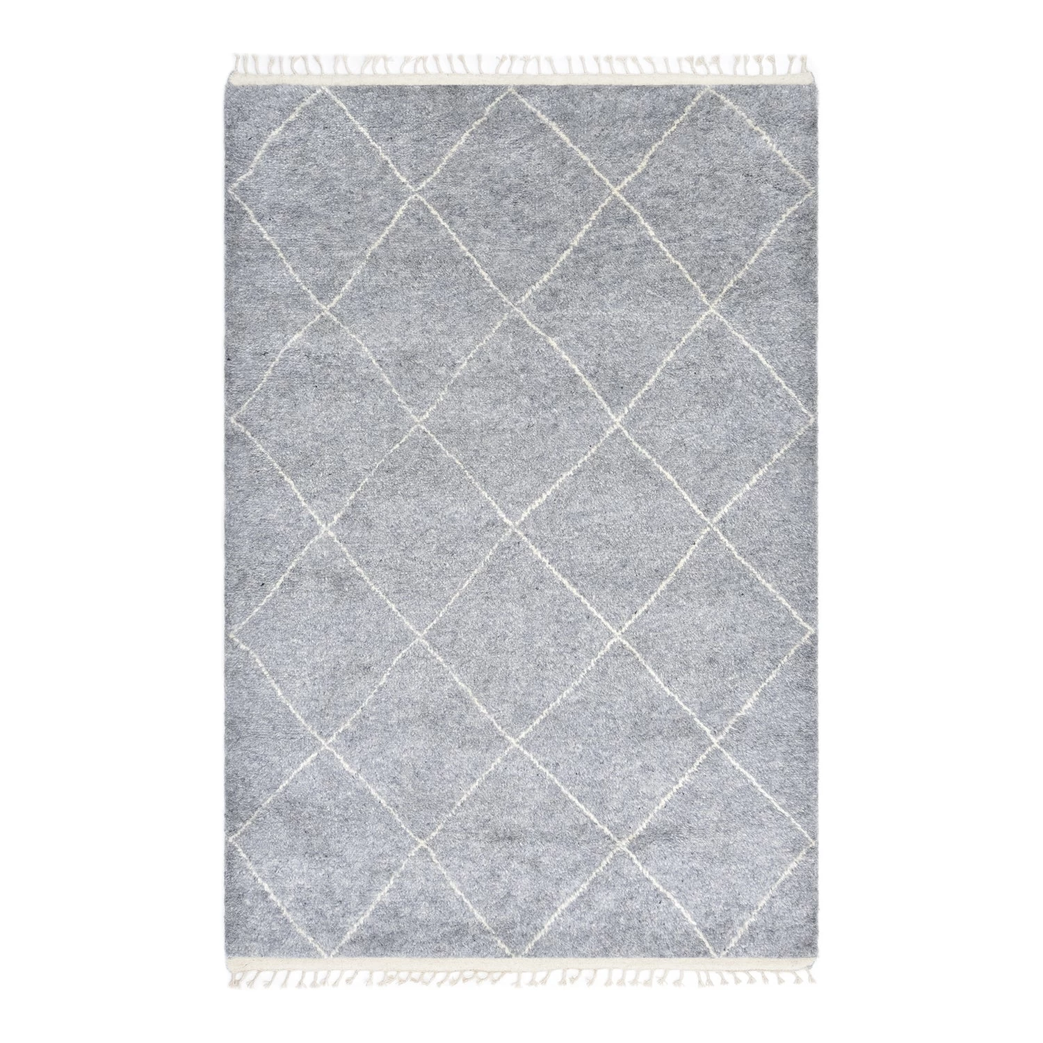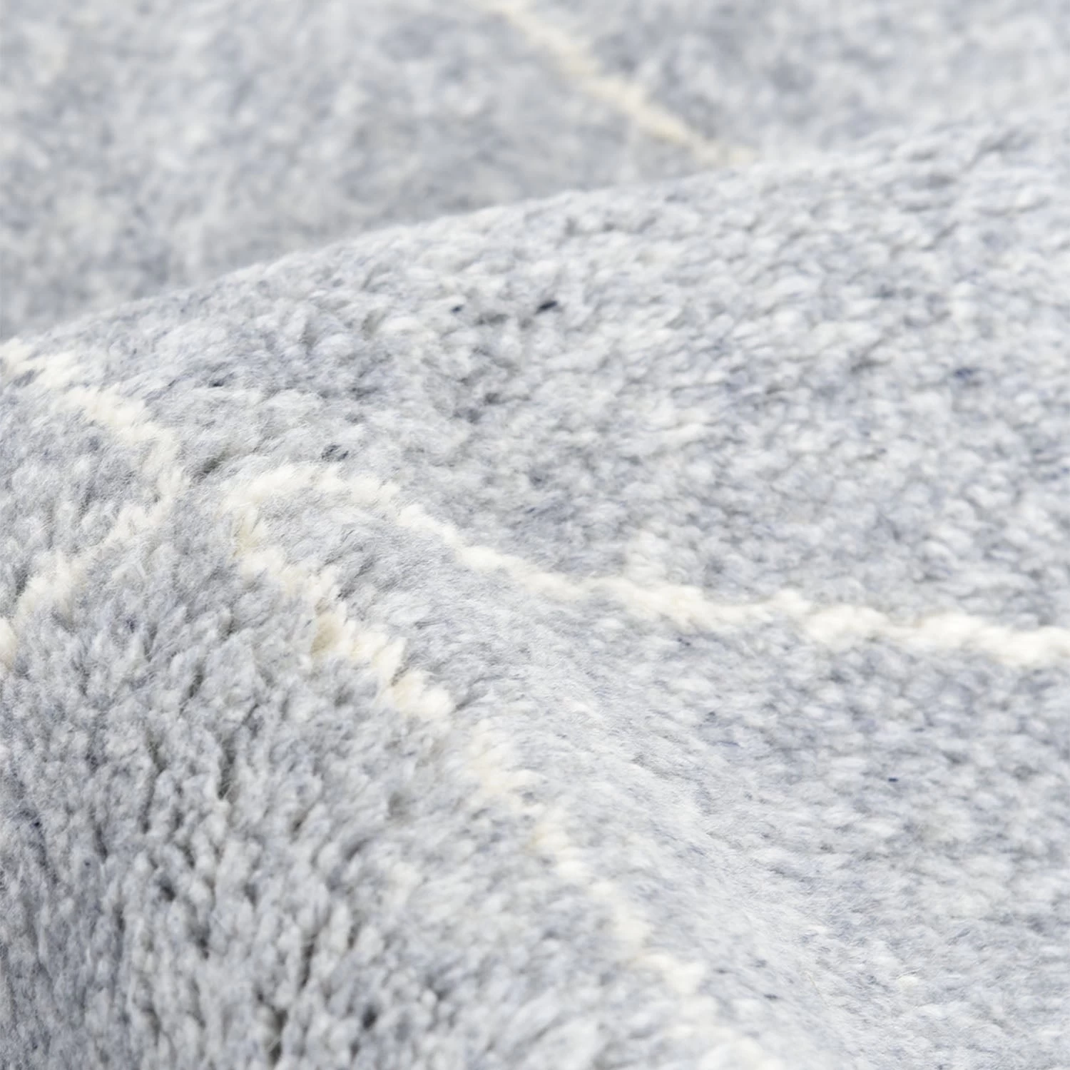 Hand-knotted of sumptuous wool with a traditional diamond design inspired by centuries-old tribal motifs, this Handmade Grey Diamond Moroccan Shag Rug – 8′ x 10′ features a neutral-toned palette in shades of light grey and white. Moroccan rugs like this rug, Beni Ourains, and boucherouites are highly prized for their plush pile that makes walking barefoot a delight. This Moroccan area rug will bring intriguing texture, as well as, a dash of irresistible design to your living room, bedroom, or beyond!