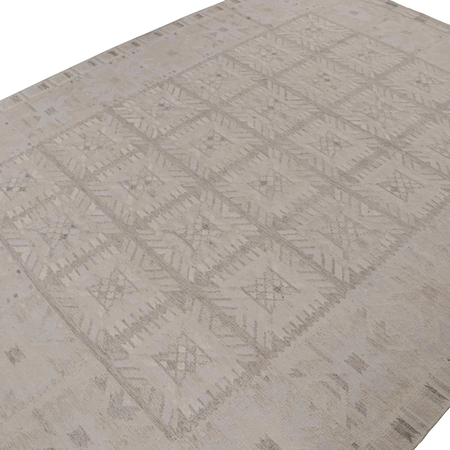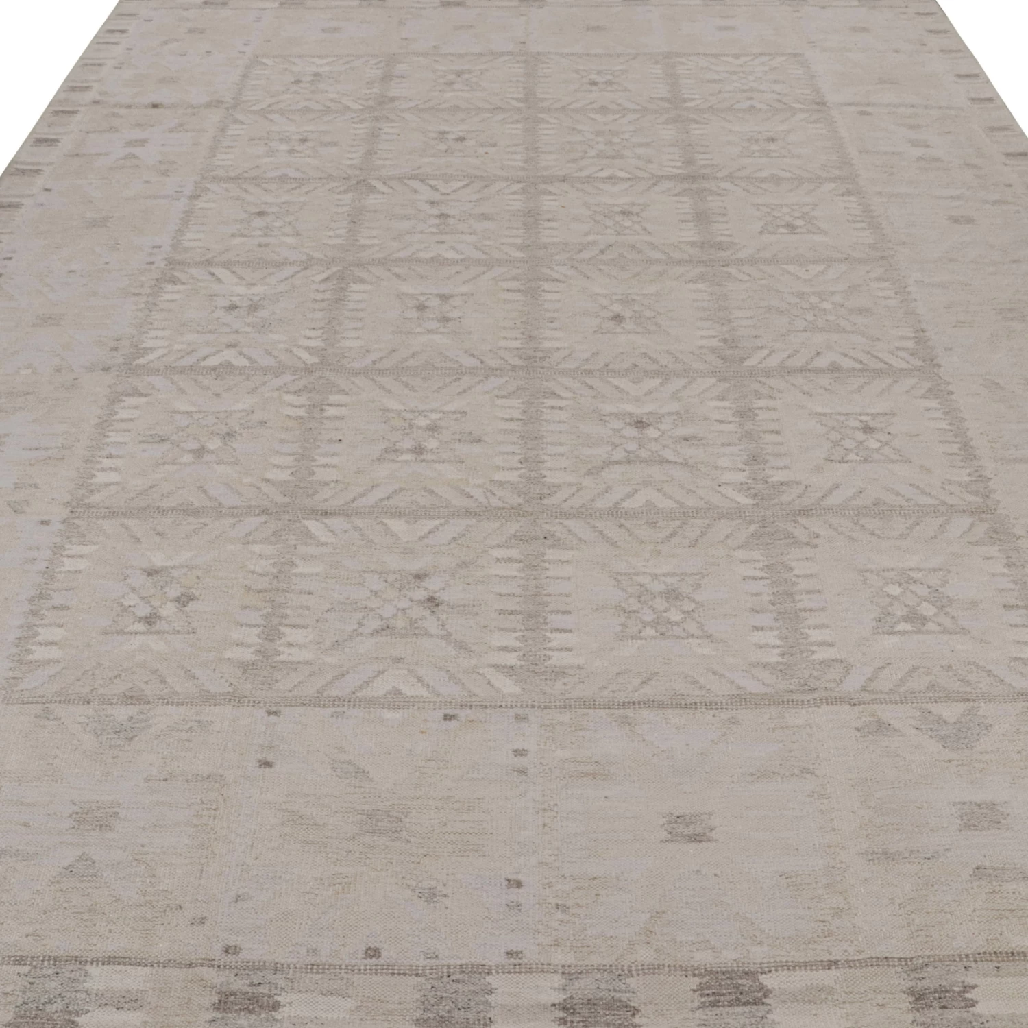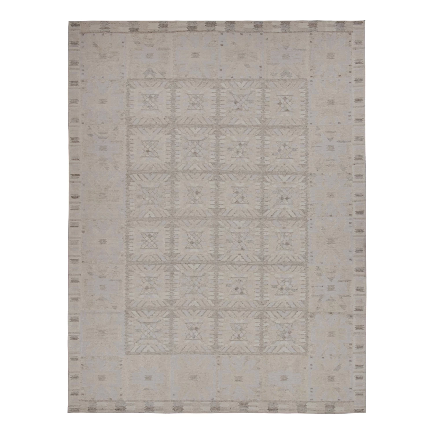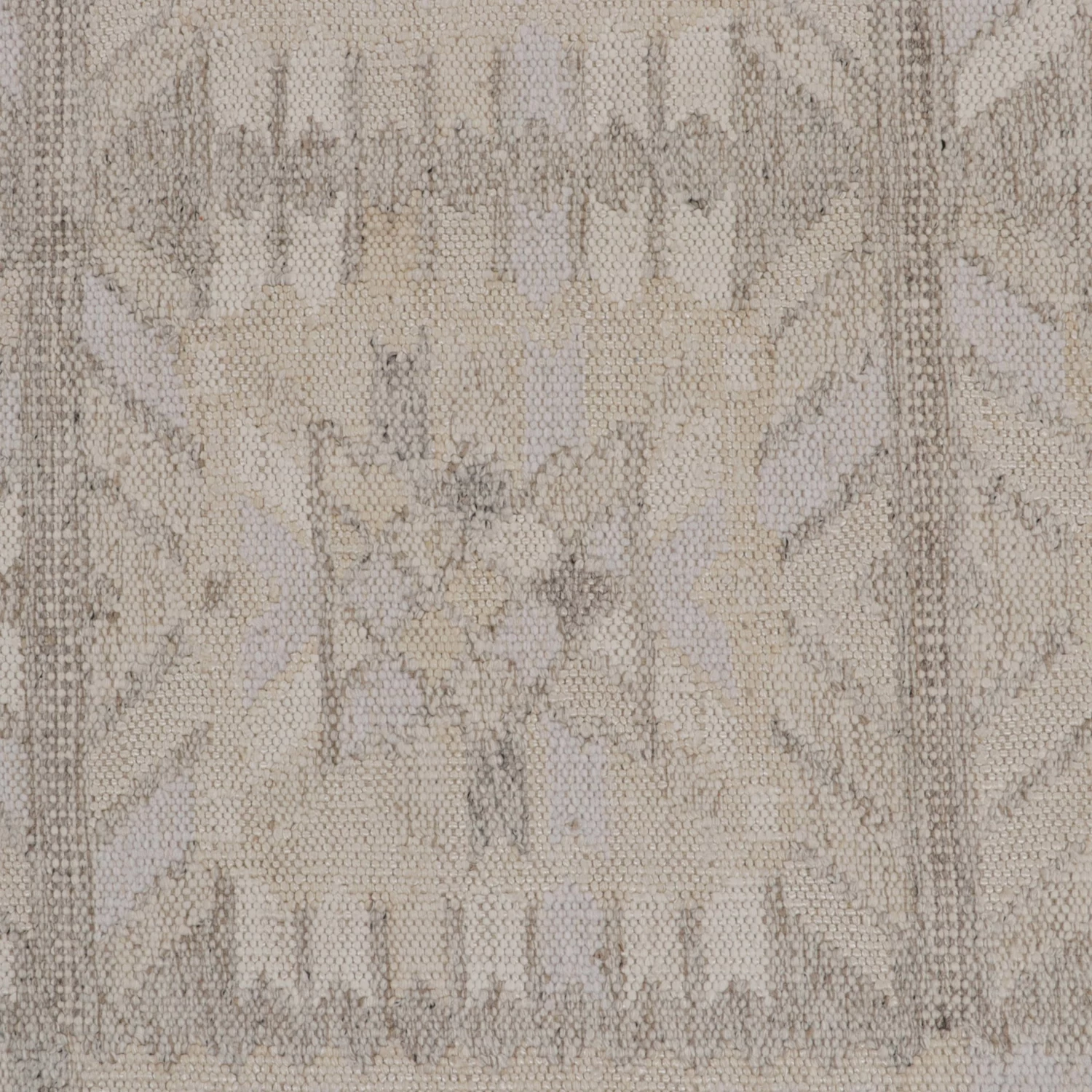 Inspired by Swedish Deco designs, this Scandinavian Style Kilim Rug- 12’2″ x 15’9″ is handwoven from durable wool while remaining soft underfoot. A beautiful addition to the minimalist or mid-century modern home, this traditional kilim rug is symmetrical and well-balanced with a neutral geometric motif. Kilim rugs are traditional flatwoven foundations that are cherished for their versatility and lightweight nature.