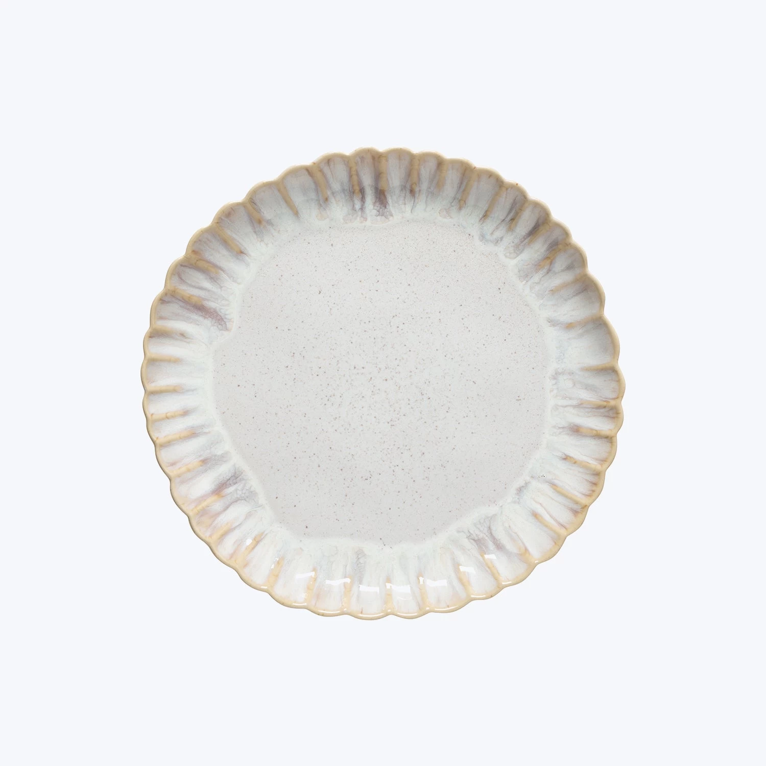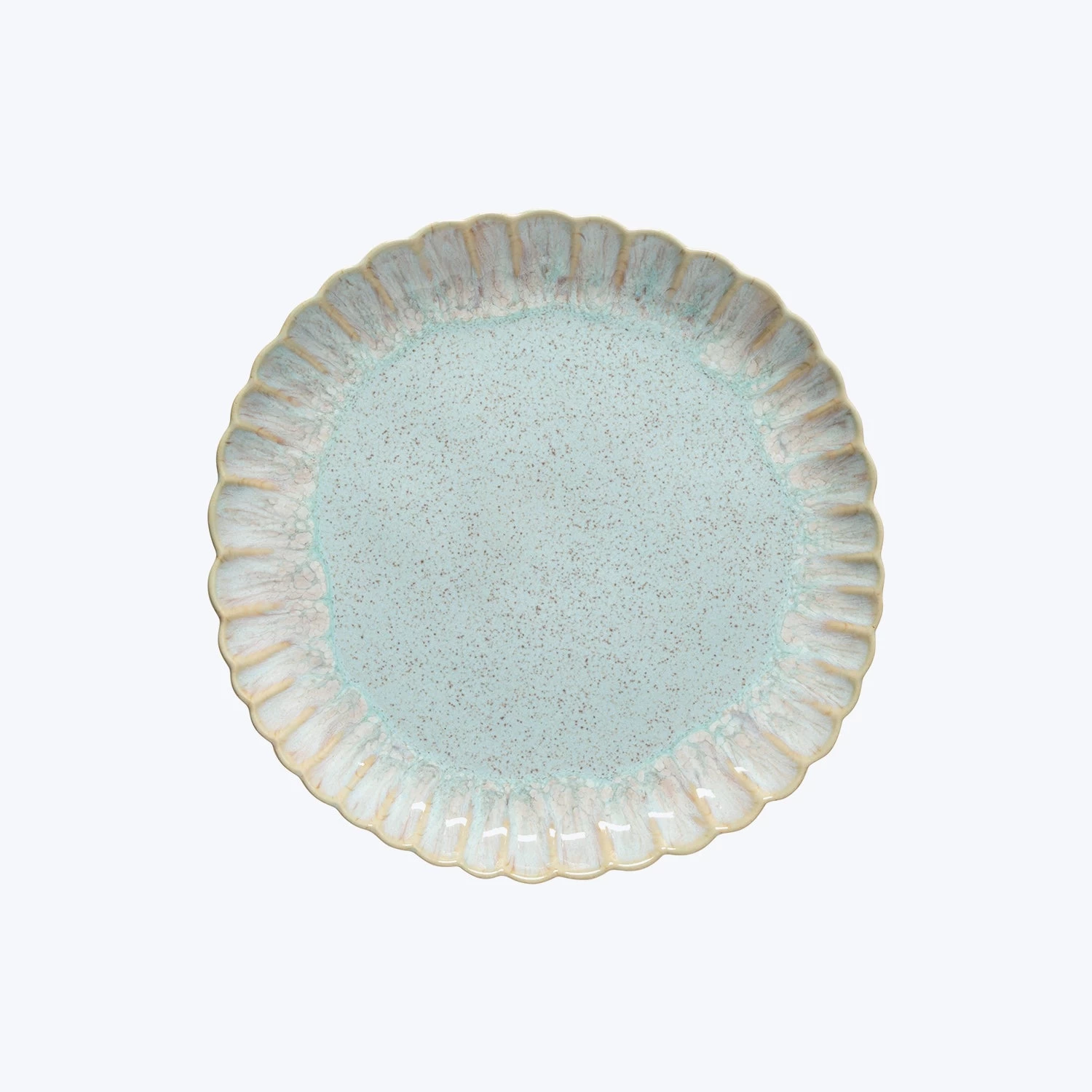 Made in Portugal, this Set of 6 Mallorca Glazed Dinner Plates is inspired by the natural landscape of the Mediterranean island. Featuring elements of serene waters, golden sands, and sea cliffs, the Mallorca Collection of ceramic dinnerware showcases reactive glazes with seashell scalloped edges.