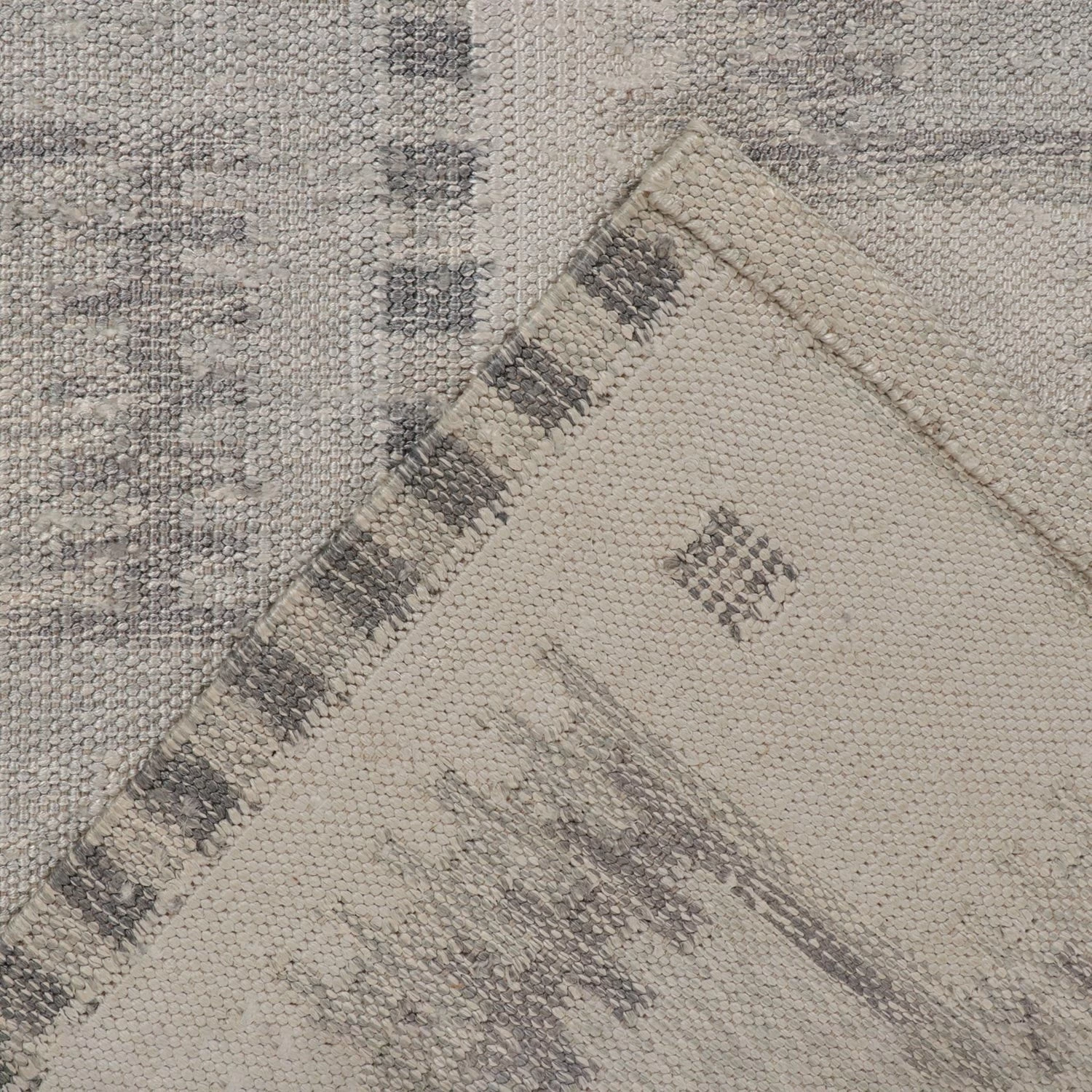 Casual yet striking, a modern palette of soothing grey hues voice a sophisticated geometric design in this Swedish-style flatweave rug handwoven from silk.