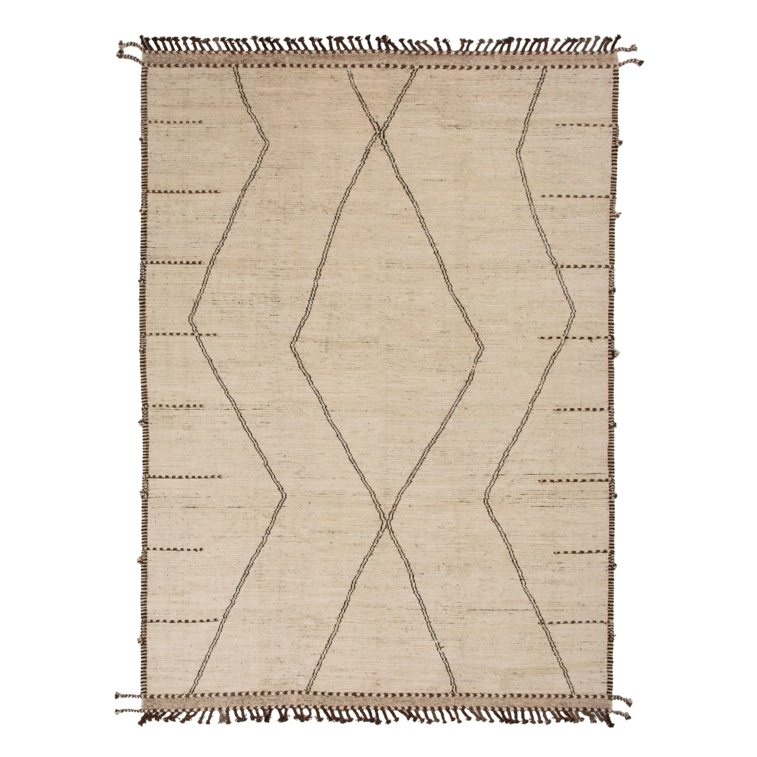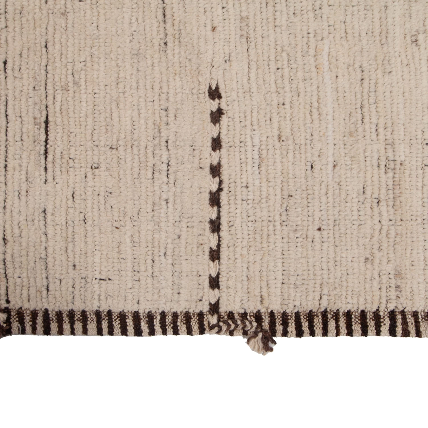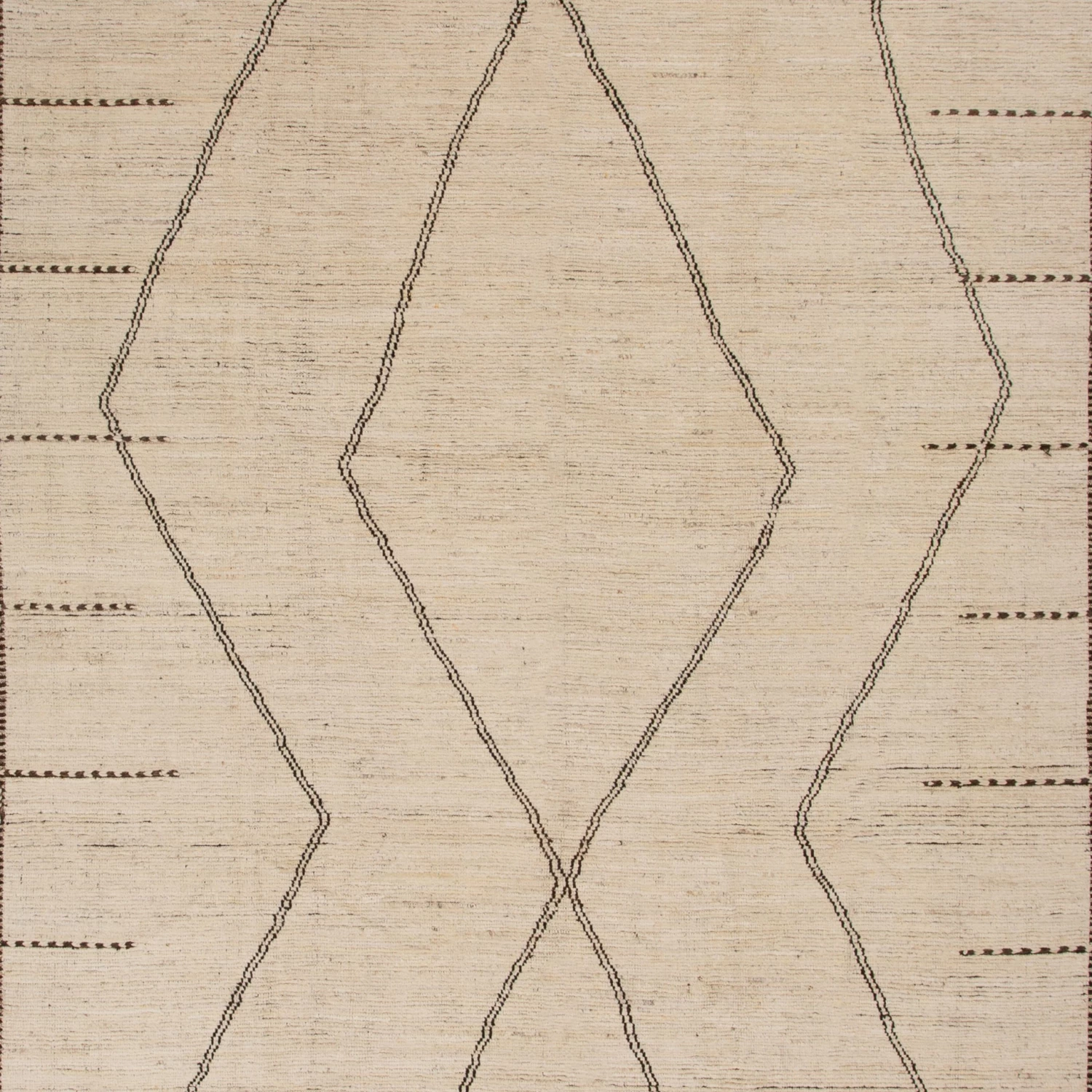 This Moroccan Style Berber Rug features natural earth tones with an asymmetrical diamond pattern serving as a modern retelling of traditional Moroccan rugs. The Tarzi Rug Collection features Moroccan Berber-style rugs hand-knotted from durable wool that is hand-dyed from natural pigments. Originating from tribal designs in Morocco’s Atlas Mountains, this one-of-a-kind rug reimagines large and oversized Moroccan rugs in modern sizes. A beautiful display of art and culture for the contemporary home.