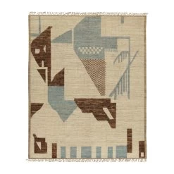 Abstract in every way, this Multi Moroccan Wool Rug – 8’1″ x 9’8″ is an eye-catching and refreshing take on classic Moroccan motifs with a modern color palette of brown, blue, and cream. In traditional fashion, this area rug is hand-knotted with quality, durable wool with a finishing fringe for an extra touch of texture.