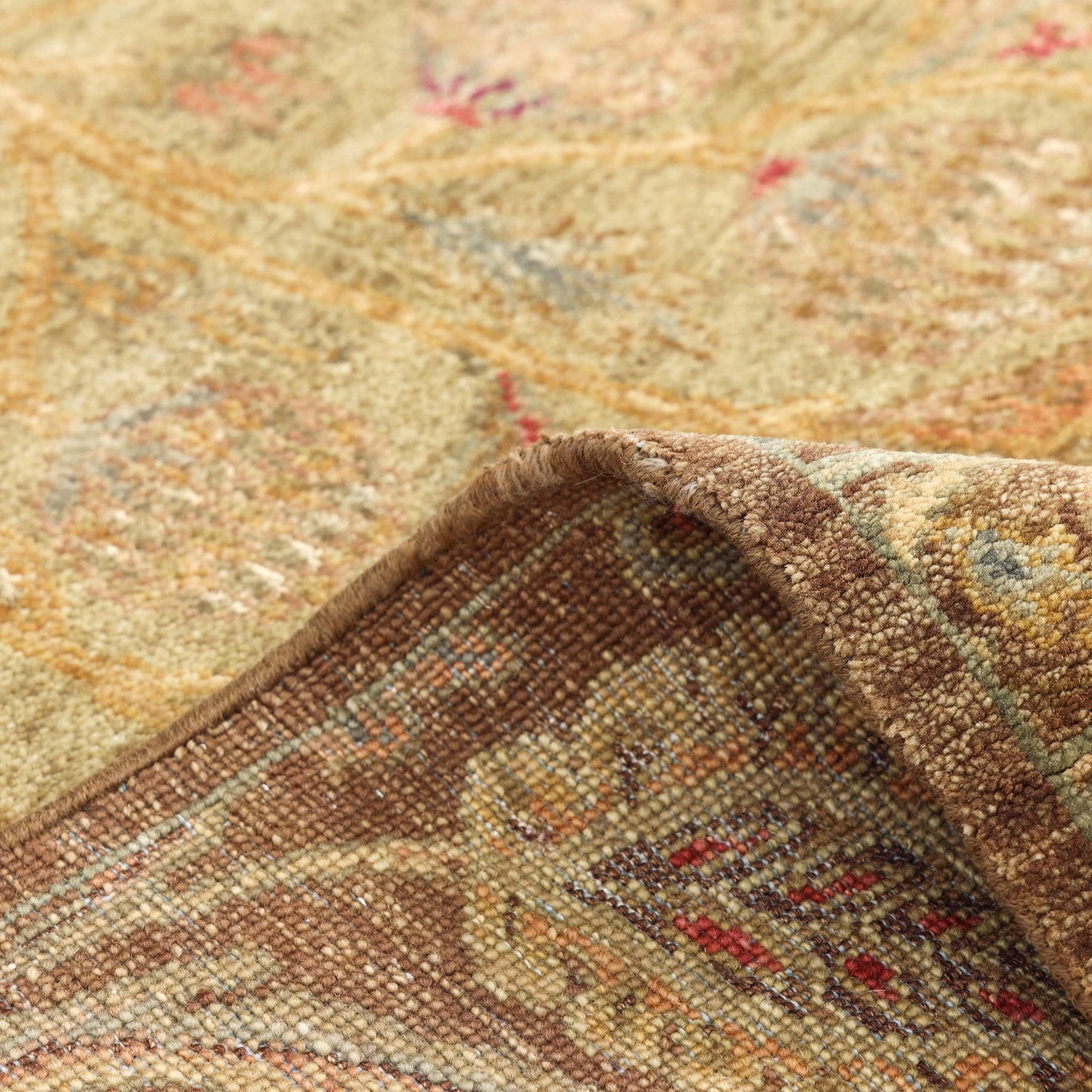 This One-of-a-Kind, Hand-Knotted Area Rug – 5’5″ x 5’5″ features a traditional botanical design with rich earth tones. Hand-crafted rugs are created over many months using techniques that have been passed down from generation to generation. This level of detailed craftsmanship means this one-of-a-kind rug is made to last. Hand-knotted and colored using plant-based dyes, this square rug features rich, saturated colors that are eco-friendly and free from harsh chemicals and synthetic compounds.