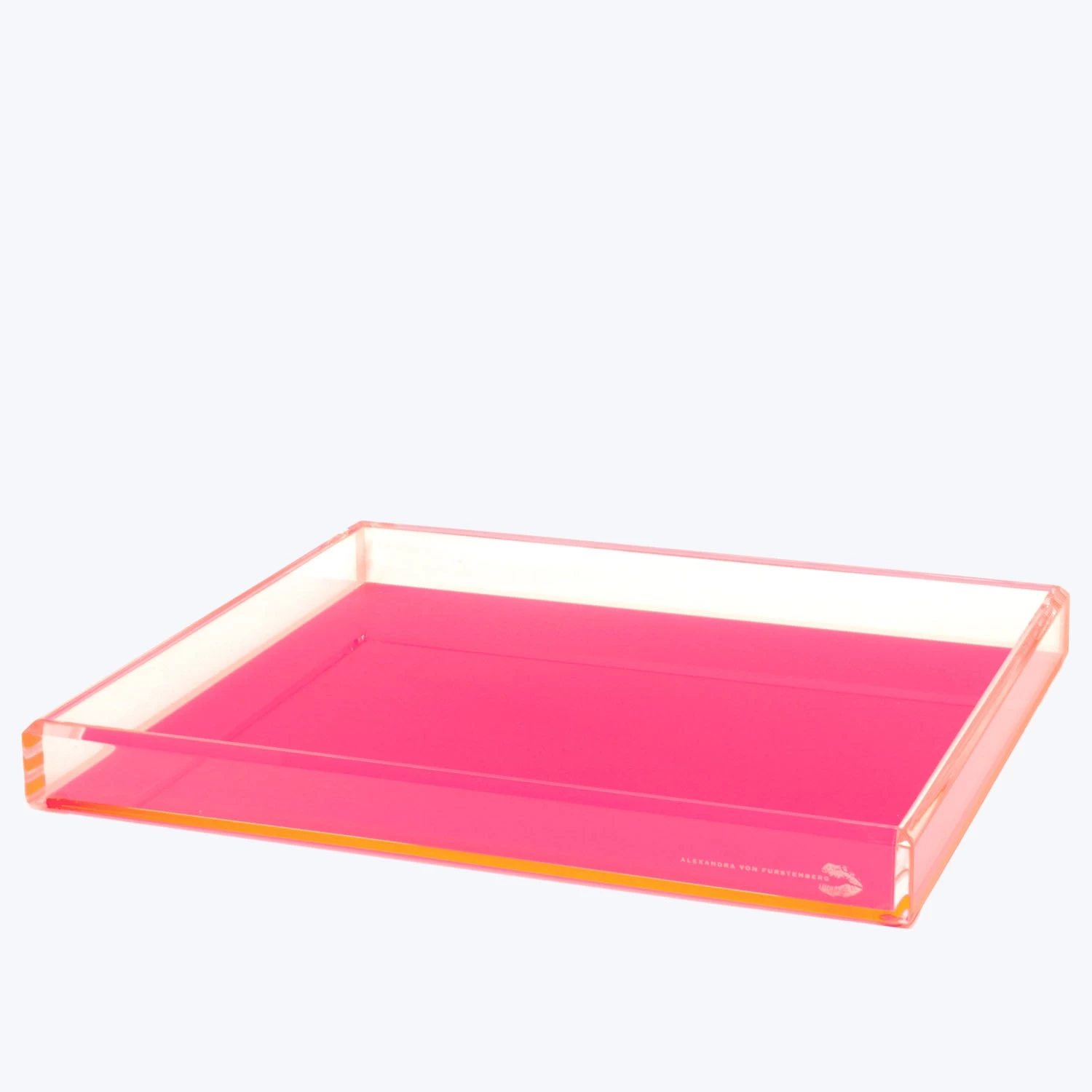 Available in a spectrum of bold hues and sophisticated neutrals, this unique collection reimagines classic trays in modern acrylic. Striking even when empty, they work well as a catch-all for keys and small objects, for serving candy or other treats, or for displaying jewelry on your vanity.