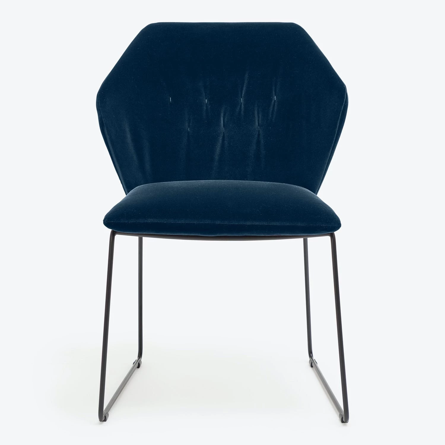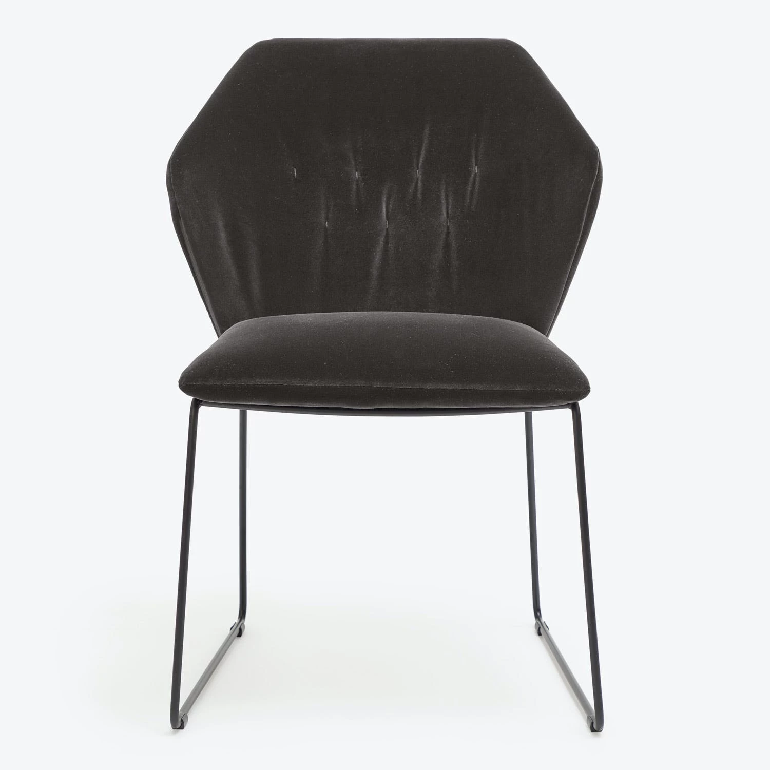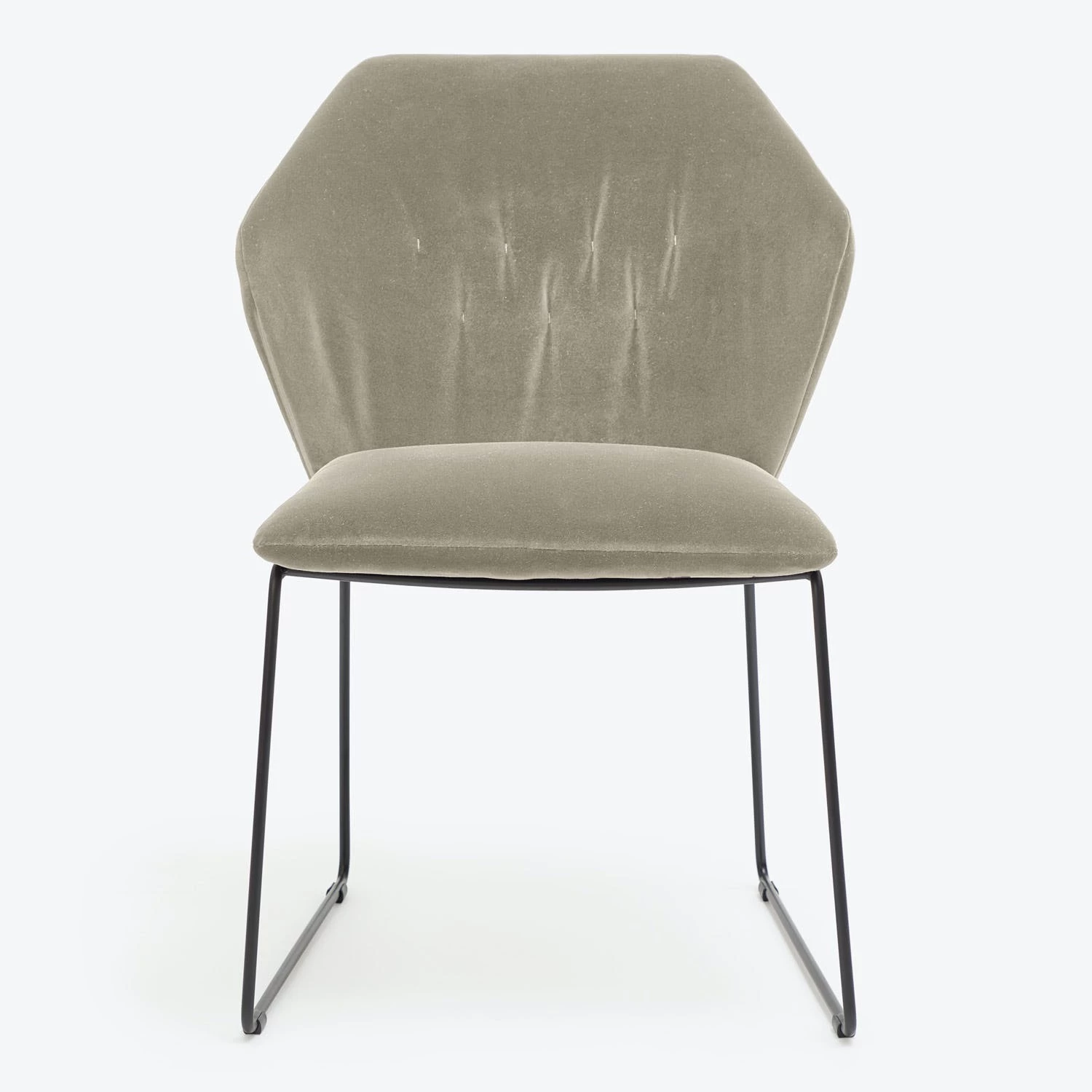 The dining chair counterpoints romantic plush velvet with a sleek metal frame. The geometric form is softened by a padded seat and back. Exclusively ours, handmade in Italy. Shop the entire Saba collection available at abc. Complete with a removable slipcover for easy cleaning or changing up your look, this piece makes light work of dining and entertaining.