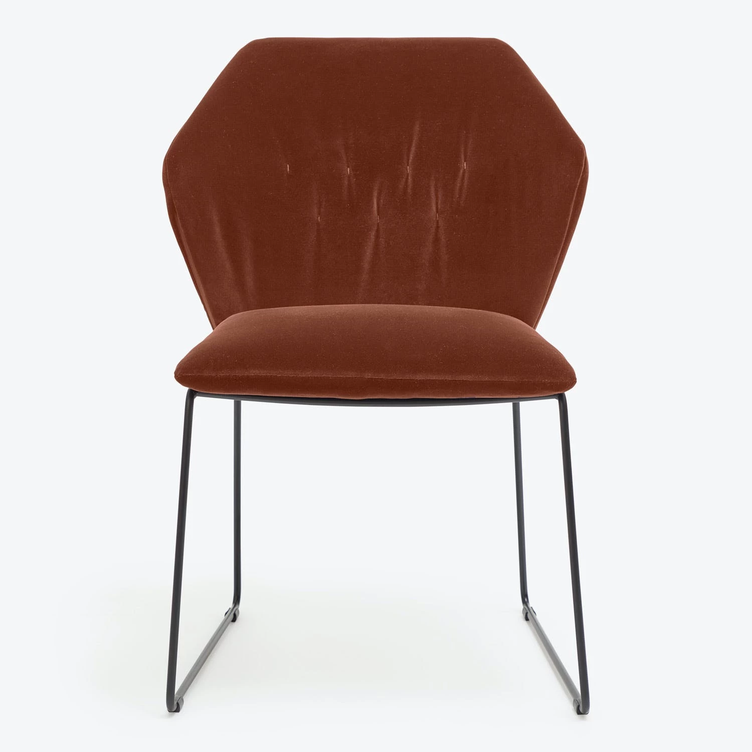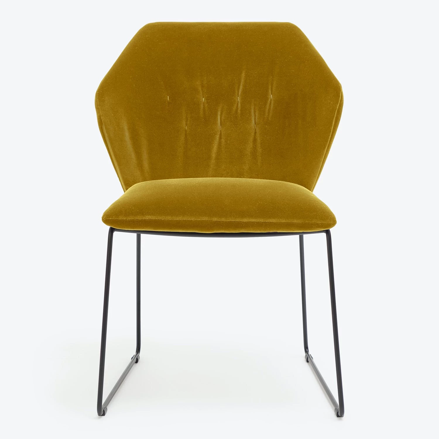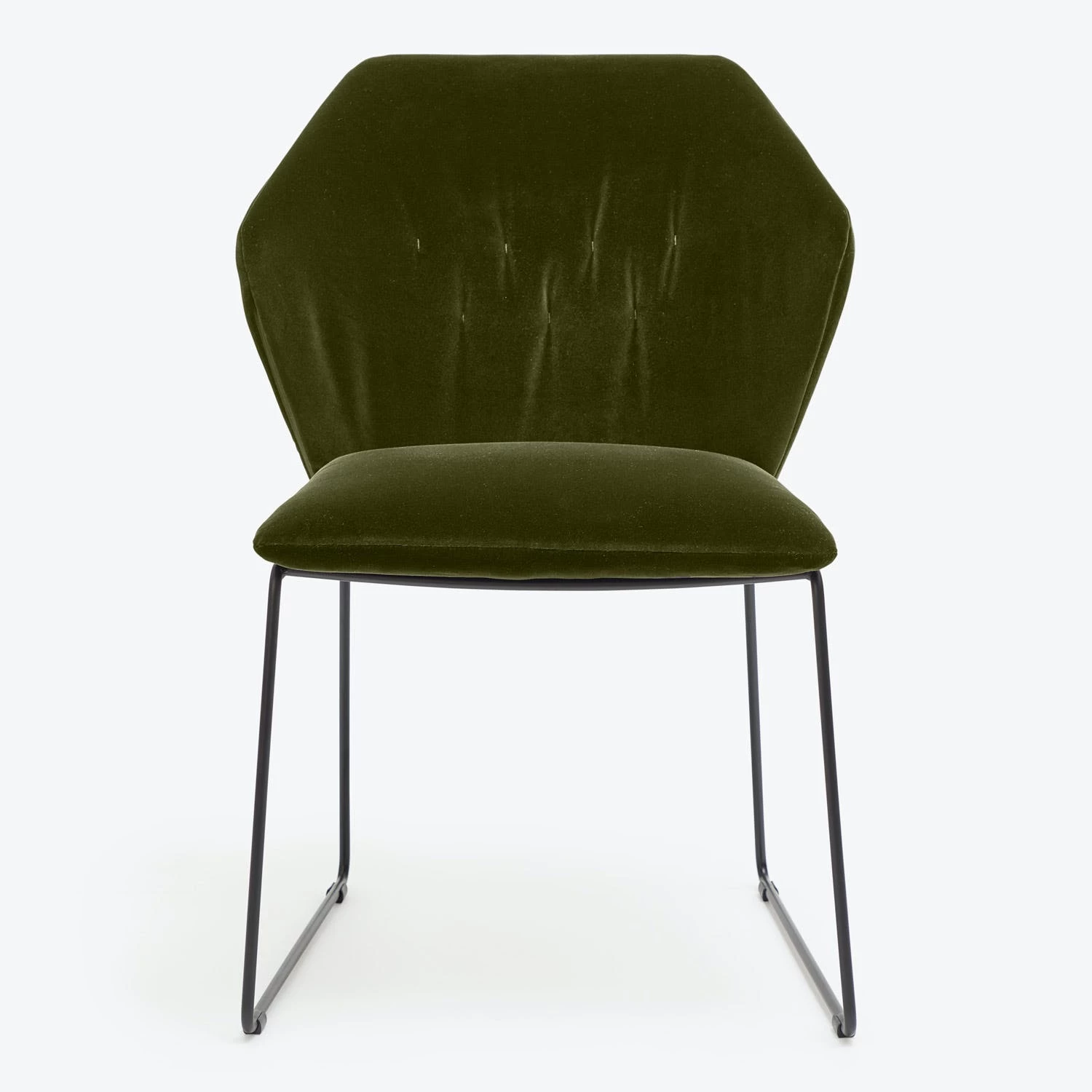 The dining chair counterpoints romantic plush velvet with a sleek metal frame. The geometric form is softened by a padded seat and back. Exclusively ours, handmade in Italy. Shop the entire Saba collection available at abc. Complete with a removable slipcover for easy cleaning or changing up your look, this piece makes light work of dining and entertaining.