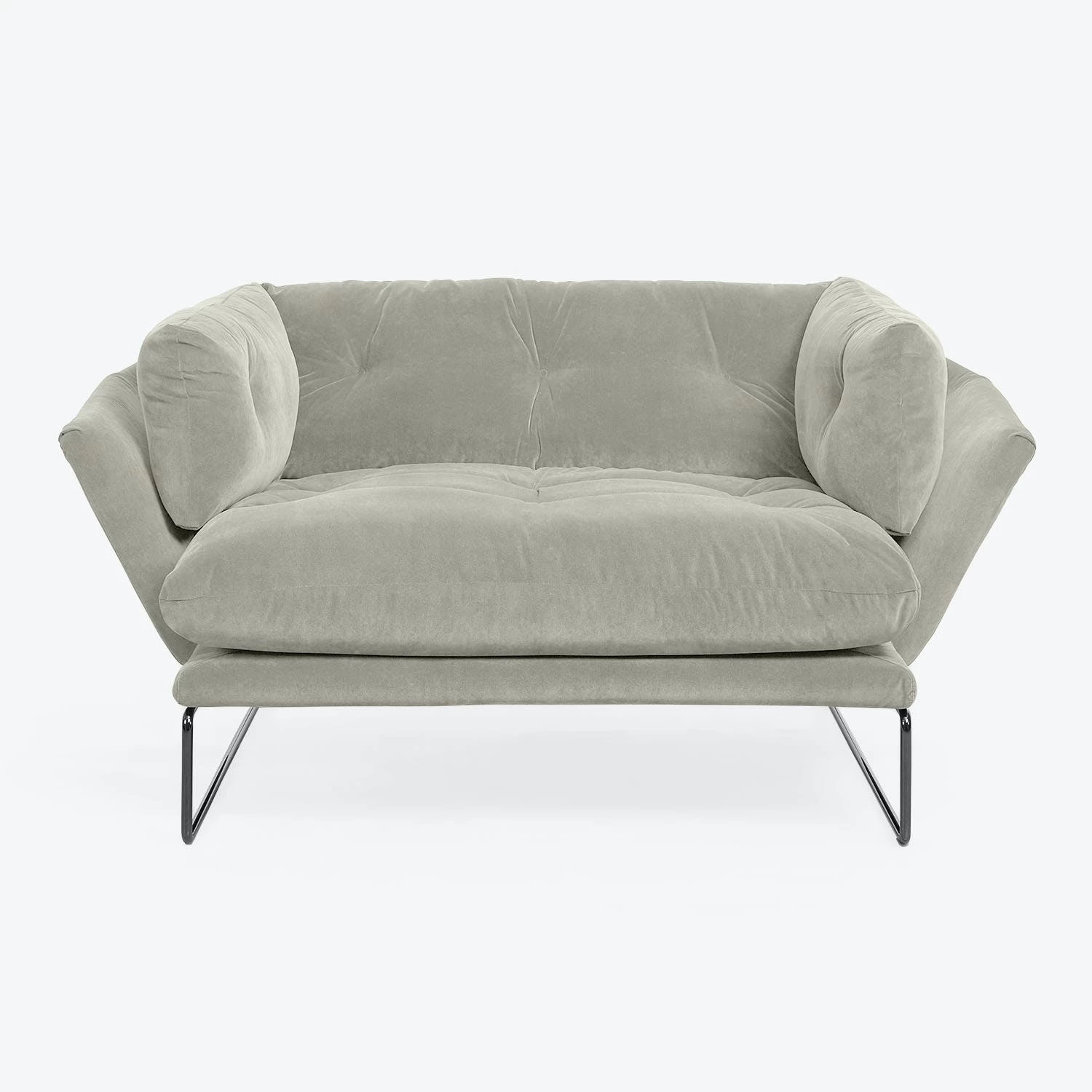 Inspired by the perfect geometry of a hexagon, the New York Suite double chair combines a clean visual expression with an inviting design. Upholstered in sumptuous velvet, the low-slung style brings a strong architectural presence to the modern setting. Complete with a removable slipcover for easy cleaning or changing up your look, this piece makes light work of dining and entertaining.