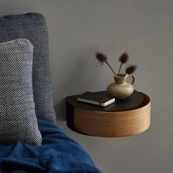 The Ethnicraft oak platform bed features subtle changes in wood grain. A streamlined frame is designed to pair with other Ethnicraft pieces.