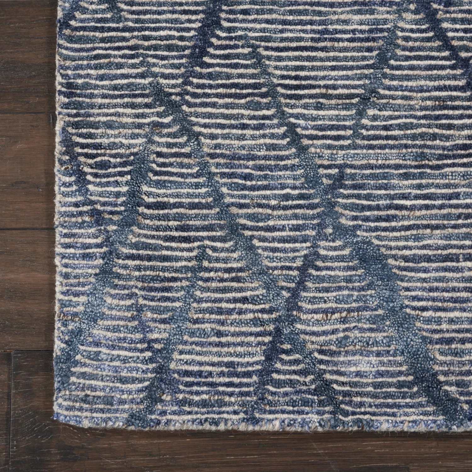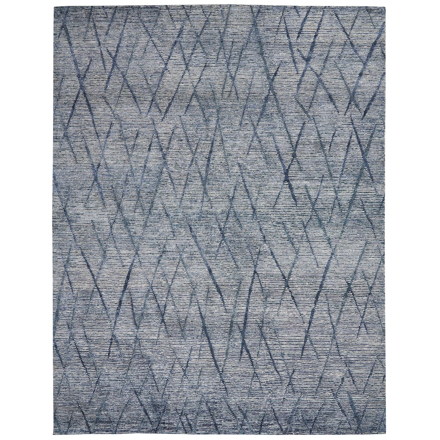Explore the depths of the Ocean Collection with this luminous, hand knotted area rug. Delicate lines of slender crosshatching add graphic interest and a contemporary slant to its sensual waves of ribbed texture. A glamorous choice in striated blue textured ridges, awash with an interplay of shadow and light.