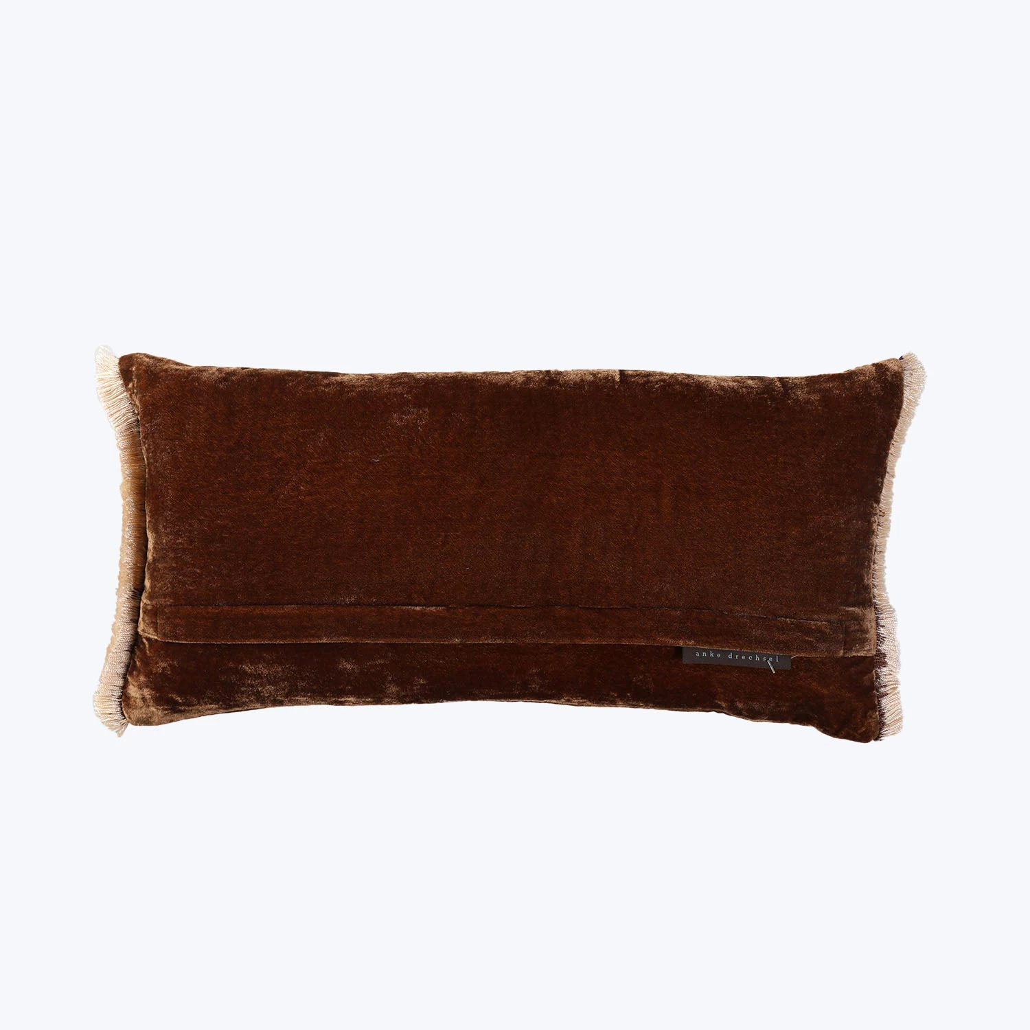 Exclusively at abc, this hand-dyed Shaded Fringe Lumbar Pillow in cognac brown adds a simple, yet sophisticated touch to your throw pillow collection. This hand-dyed silk velvet pillow is beautiful alone or combined with other colors and patterns. Each artisan-crafted cushion is a product of slow design and possesses an heirloom quality.