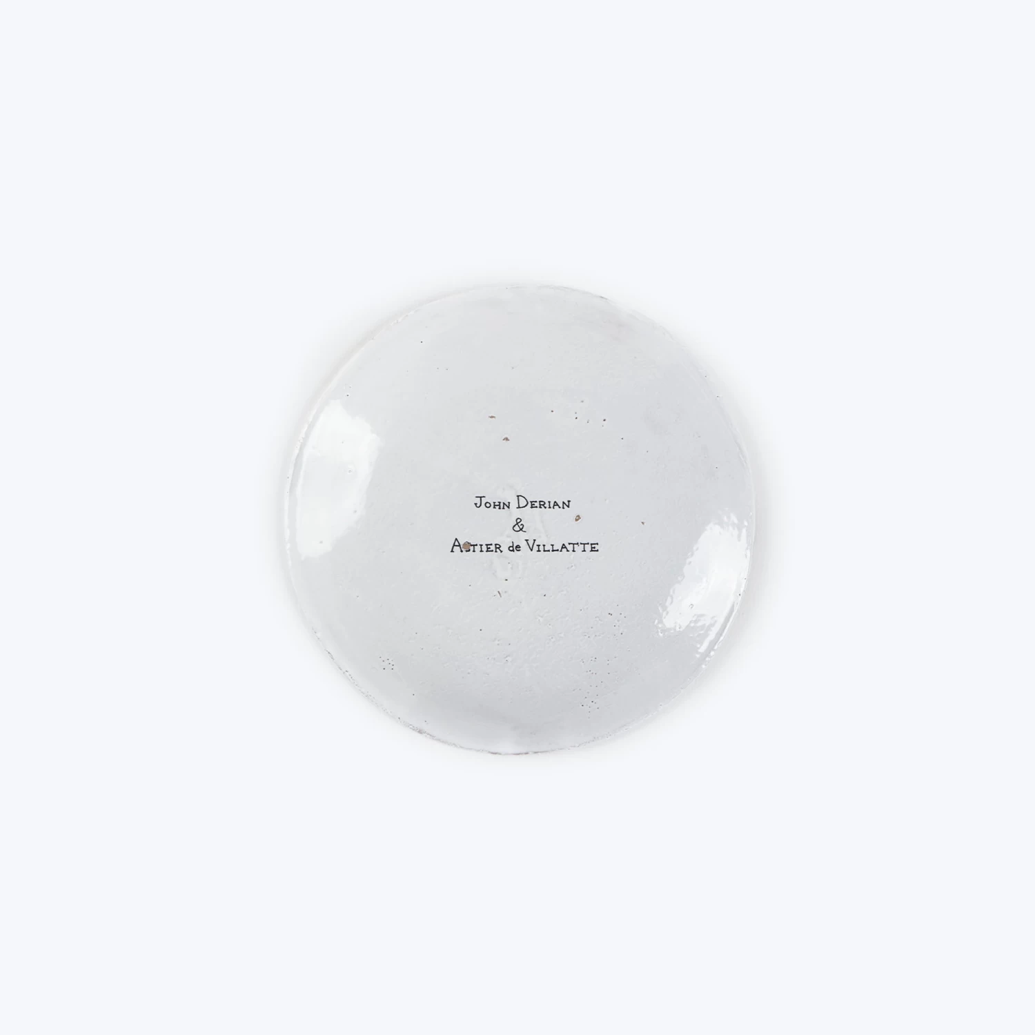Happiness is abundant. A delicate plate features a design created by John Derian using his signature decoupage techniques. Each ceramic piece is handmade by Astier de Villatte in an antique Bastille workshop, employing a traditional pottery style passed down from generation to generation. While perfect for displaying fruit, baked goods, or treats, it also serves as a trinket dish to hold small treasures.