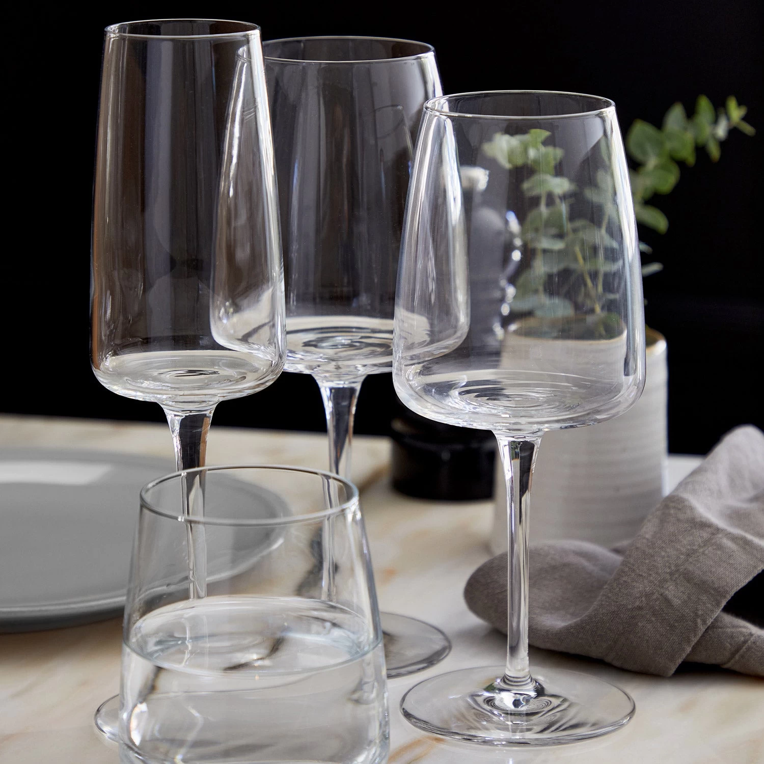 A simple yet contemporary shape defines this Set of 6 Vine Water Glasses. The Vine Drinkware Collection is created from lead and cadmium free crystalline glass that is pressed and finished with a cut rim.
