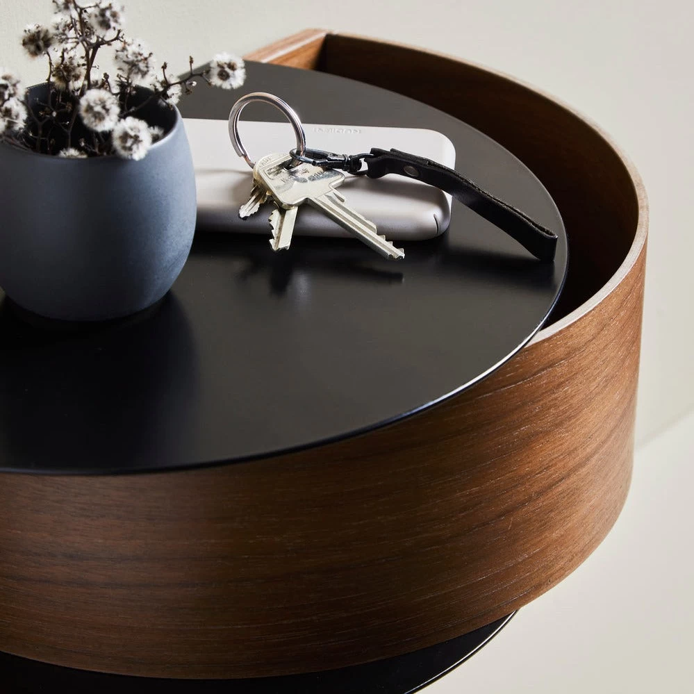 The Wallie Wall Drawer, designed by Amalie Skov Rahbaek, beautifully combines bended oak with solid black metal to create an elegant wall-mounted drawer. With its circular, soft shape, Wallie will soon become the centerpiece of your decor. The brackets embrace the magnetic wood drawer making the design both minimalistic and functional. The Wallie is perfect for storing small everyday essentials in the hallway or as a floating bedside table in the bedroom. WOUD is FSC Certified ensuring that products are crafted in a responsible and sustainable manner.